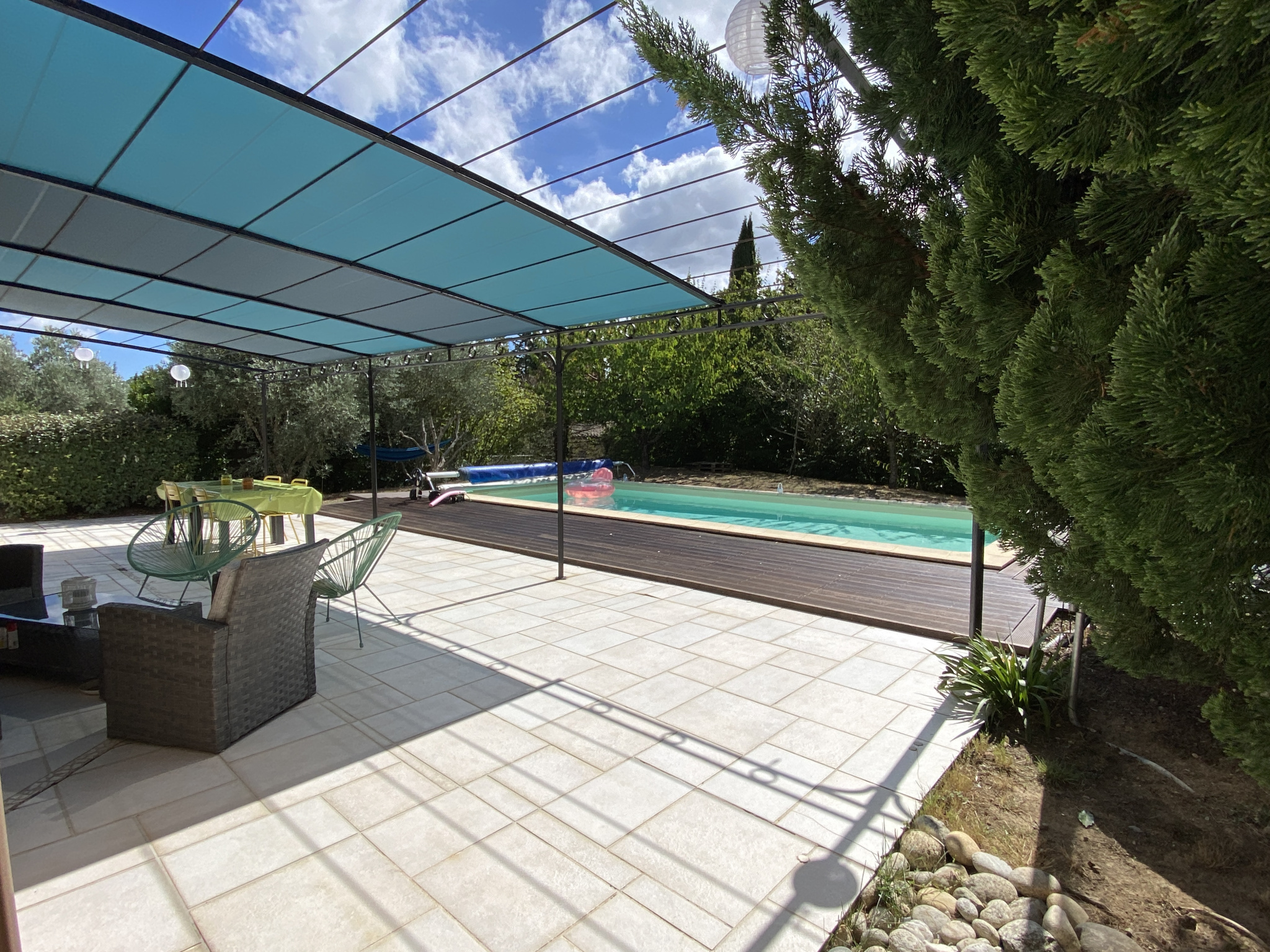 PALAJA, à 5 minutes du centre-ville et de la Cité de Carcassonne, bel environnement pour cette maison de plain-pied, 3 faces, très bien entretenue, d'une surface habitable d'environ 150 m2 assise sur une parcelle de 1106 m2. Elle se compose d'une entrée, d'une grande pièce à vivre exposée plein sud et donnant sur le jardin, avec salon, salle à manger, et une cuisine équipée, un cellier, une buanderie, l'espace nuit s'articule par un dégagement qui dessert 3 chambres avec placard, une salle d'eau et un toilette et d'une deuxième partie plus à l'écart avec un bureau, une chambre avec salle d'eau et placard, garage attenant. La maison est équipée d'une cheminée avec récupérateur, d'une bonne isolation, d'un compteur « TEMPO », ce qui permet une économie de consommation électrique. Quant au jardin idyllique, sans vis-à-vis, donnant sur la pinède, il est agrémenté d'une piscine 9x4 avec plages, système au sel, d'une grande terrasse carrelée avec une pergola, d'un puits, le tout sur un terrain clos et aménagé dans un village avec toutes commodités ! La campagne à proximité de la ville ! Venez rapidement la découvrir !