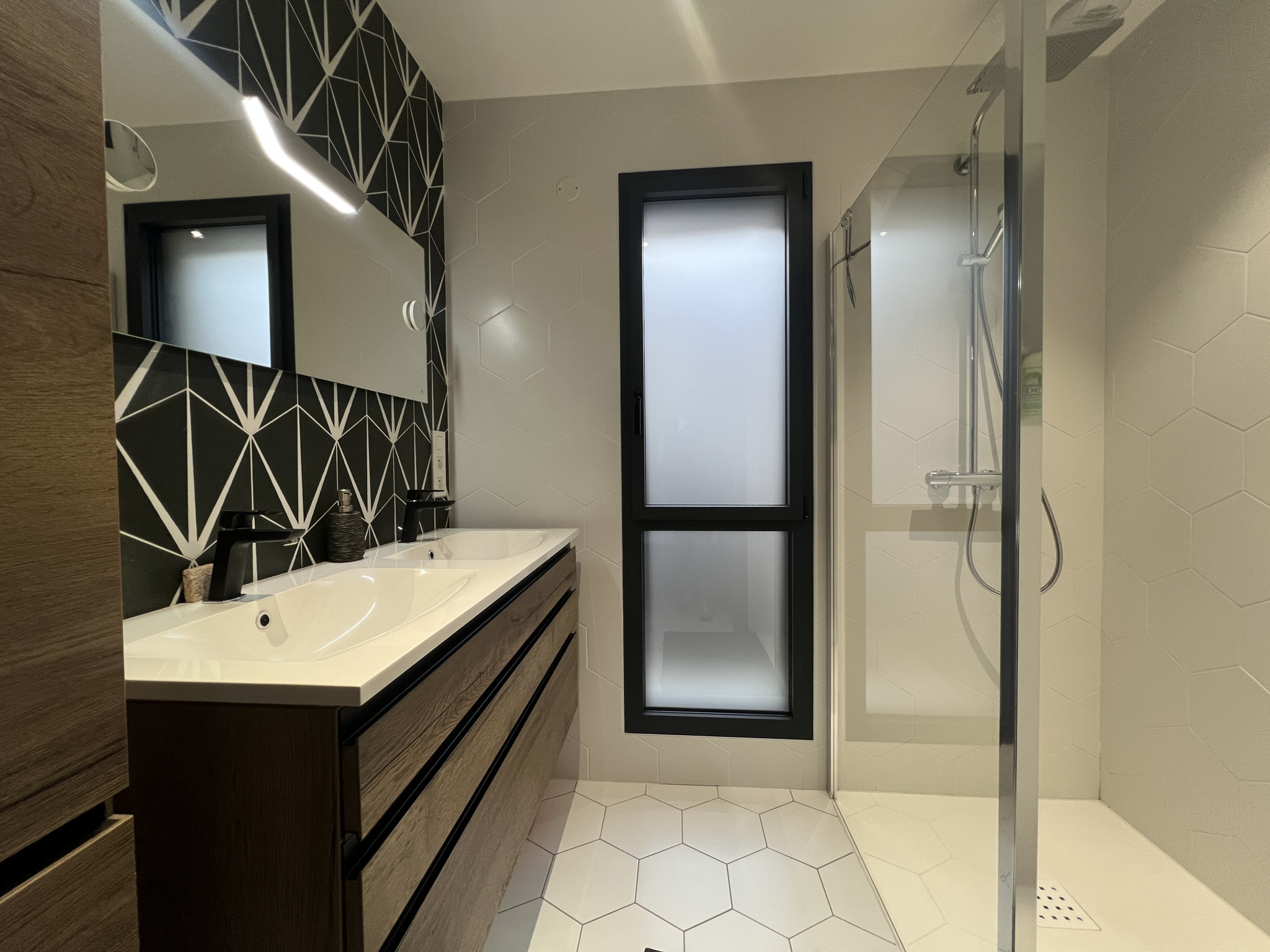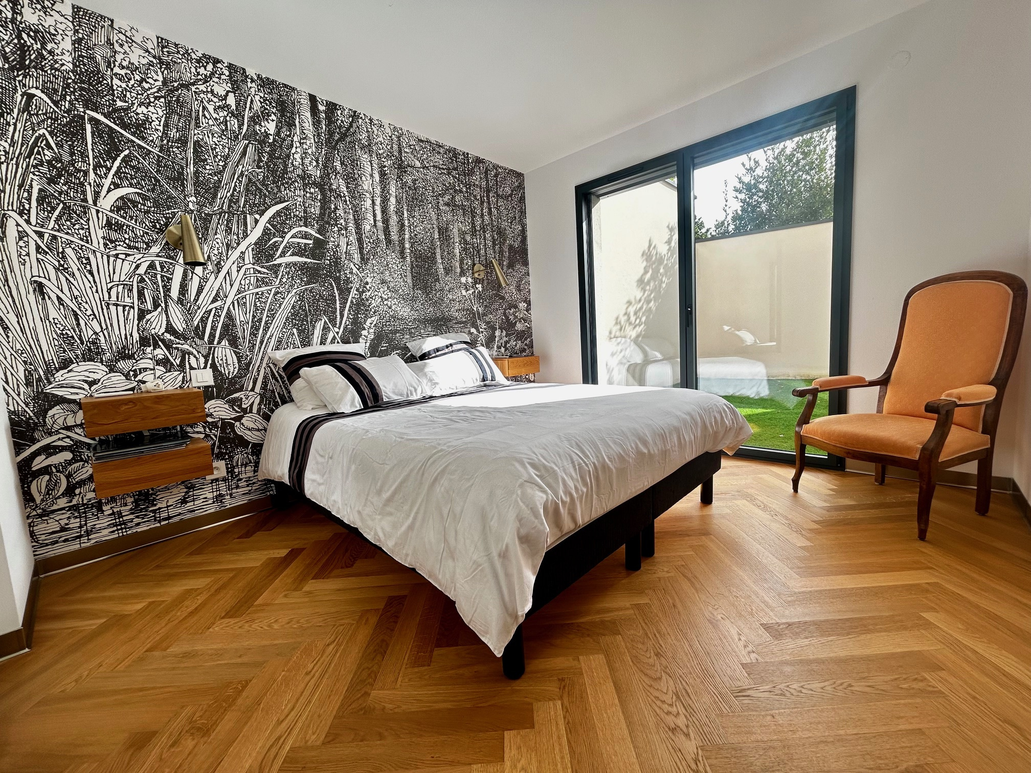 A VENDRE DIJON au coeur des Carrières Bacquin (proximité Gare, Tram, Bus), coup de coeur pour cette superbe maison contemporaine de 2020 avec piscine chauffée et dépendances 187m2 avec dépendance (sauna, salle de relaxation dans maisonnette indépendante) - entrée dans vaste pièce de vie avec cuisine équipée contemporaine ouverte haut standing (accès par baies vitrées sur terrasse et piscine exposition Sud), 5 chambres dont 2 en rez de chaussée, patio intérieur ouvrant sur l'une des chambres du rez de chaussée, salles de bains, toilettes, garage 2 voitures, matériaux de très belle qualité, prestations haut de gamme