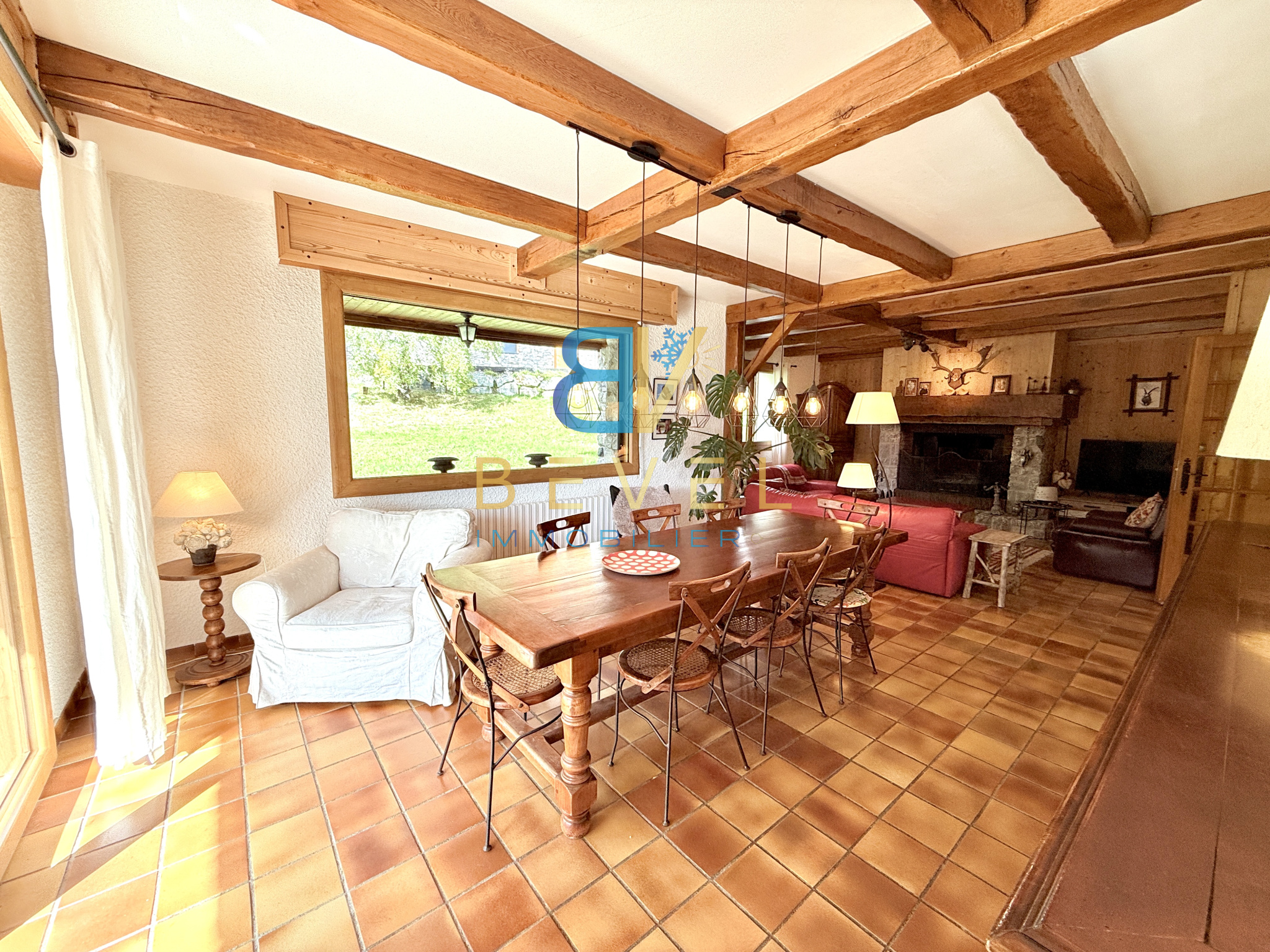 Grâce à son exposition Sud, vous profiterez d'un parfait ensoleillement à toute saison et donc d'une belle luminosité depuis les pièces du chalet. Dans un style intemporel, doté d'une ossature bois et pierre, ses prestations extérieures bénéficiant d'une grande terrasse ainsi que d'un joli terrain offrant environ 1 500m2 d'espaces n'attendent que vous. Celui-ci étant parfaitement entretenu et ensoleillé. Vous disposerez d'un garage et de la place nécessaire afin de stationner vos véhicules devant le chalet.