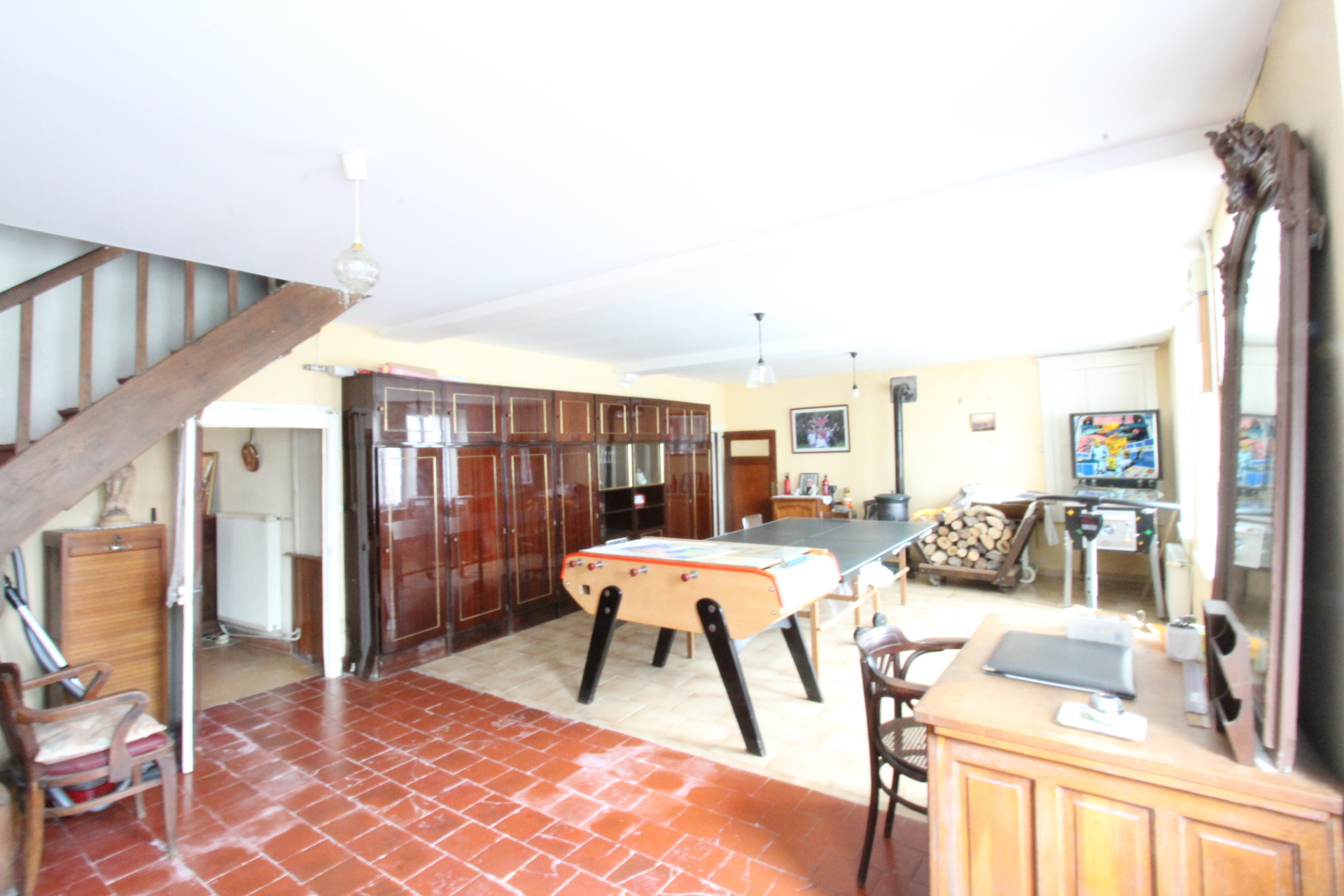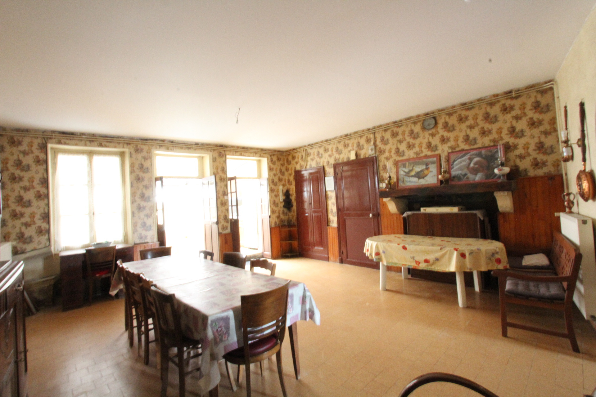 A saisir ! 20 km à l'Est de La Charité sur Loire, dans la campagne vallonée, cette maison-ancien commerce (ref.10382) dispose de trois pièces très vastes : la salle à manger 33 m2, le salon 40 m2 et la salle de jeux 44 m2. Elle peut donc accueillir les réunions familiales ou les artistes sans problème de place. Sur 240 m2, elle est habitable de suite ; à l'étage, quatre chambres et quatre greniers aménageables. Atelier et garage attenants ; la dépendance avec grange, étable et hangar au bout de la cour commune, avec terrain autour d'environ 1.000 m2. Toitures en bon état.