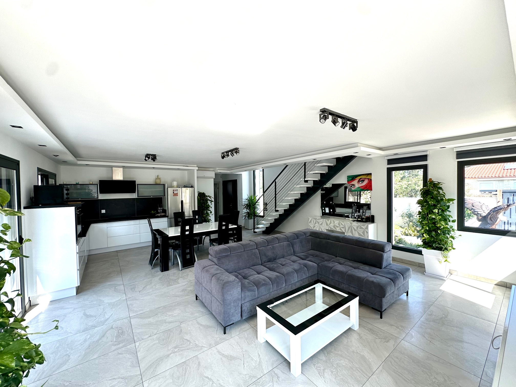 A Perpignan, au Calme, sans vis-à-vis, sur une parcelle où sont construites 4 villa de standing et contemporaine RT2012, type T5 (4 chambres) à usage d'habitation élevée d'un étage sur rez-de-chaussée édifiée en 4 faces, d'une surface habitable de 140m2 environ sur un terrain de 370m2 environ avec Mur mitoyen en parpaings de 1,80m pour une intimité, grand portail, terrain piscinable, parfaite pour une famille, est située hors lotissement, proche commodités et à 5 minutes du centre-ville. La Villa de standing offre au RDC une grande entrée avec une belle grande porte d'entrée, un grand espace de vie de près de 55m2 : Salon Séjour et une Cuisine équipée et cellier donnant sur une terrasse et jardin arboré et piscinable, une suite parentale de 18m2 au RDC avec salle d'eau et dressing, un wc séparé et un cellier. A l'étage, un dégagement de 11m2, 2 chambres de 13,50m2, 1 grande suite parentale de 18m2 et 1 grande salle de bain de 7m2 et un wc séparé. Prestations de standing, carrelage 80x80, climatisation réversible, spots, menuiserie alu sécurisé SP10. Garanties décennales. Perpignan Ouest, à moins de 3 minutes de la rocade A9, proche commerces, écoles, restaurant, salle de sport (dans un rayon de'1 kilomètre), proche Saint Charles et CCI. Pour plus d'informations ou visite, contactez-nous au 0683746071, Mme LE GUEVEL, EI, RSAC No814377776, Agence LAVILLE IMMO. Ville du greffe : PERPIGNAN. Les informations sur les risques auxquels ce bien est exposé sont disponibles sur le site Géorisques : https://www.georisques.gouv.fr. Honoraires d'agence à la charge du vendeur.