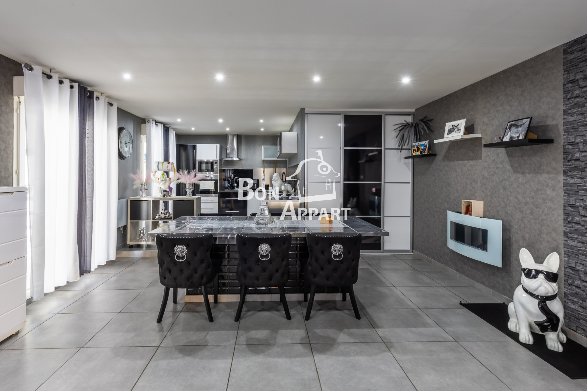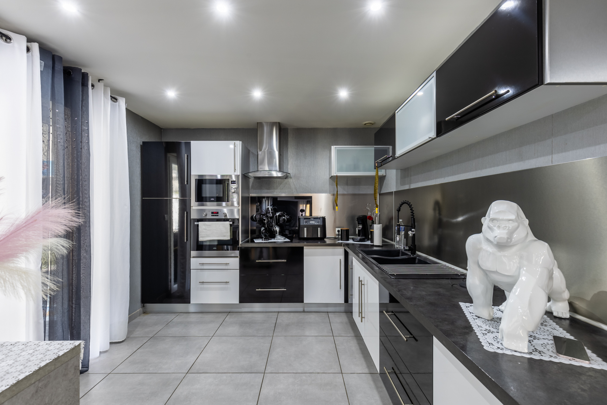 Son intérieur moderne et lumineux vous propose une superbe cuisine équipée, un spacieux espace de vie donnant accès à sa terrasse couverte et son jardin exposé plein Sud par lequel vous pourrez accéder à un deuxième coin terrasse avec une piscine chauffée pour vous détendre et profiter du calme en bordure de forêt.