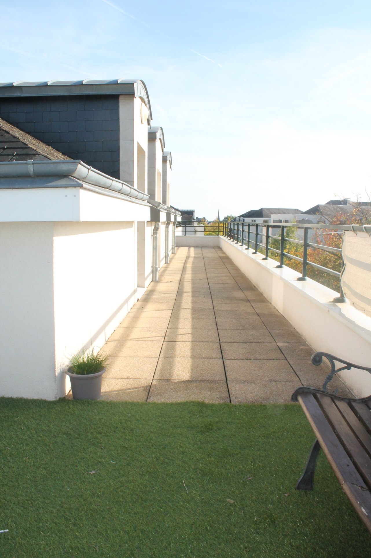 Magnifique terrasse de 90.65 m2 autour de l'appartement (accès via toutes les pièces principales), exposée principalement nord et ouest.