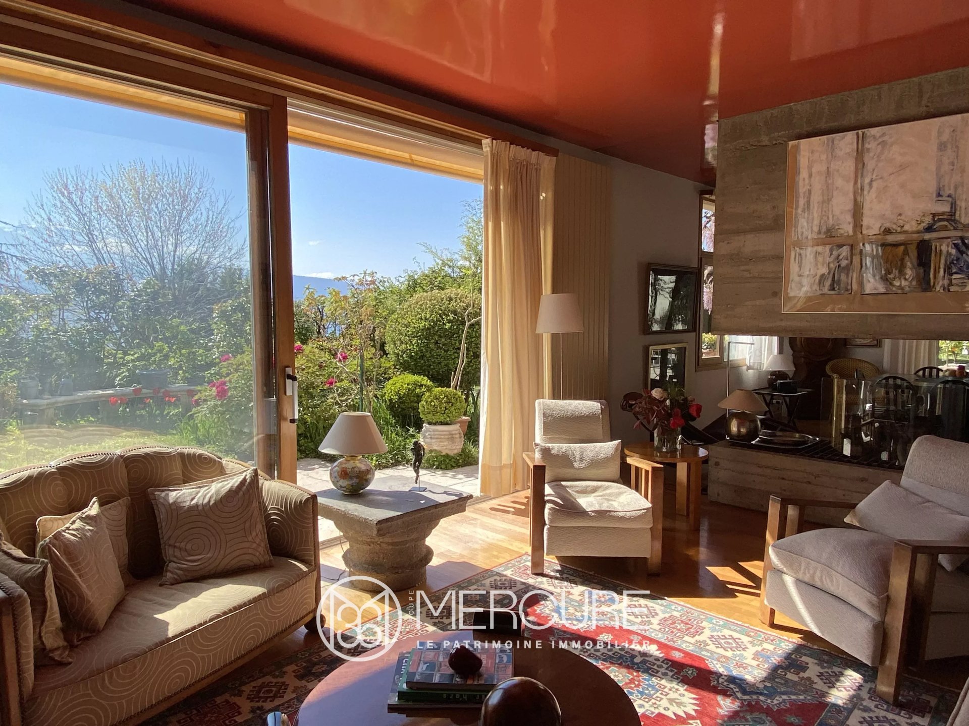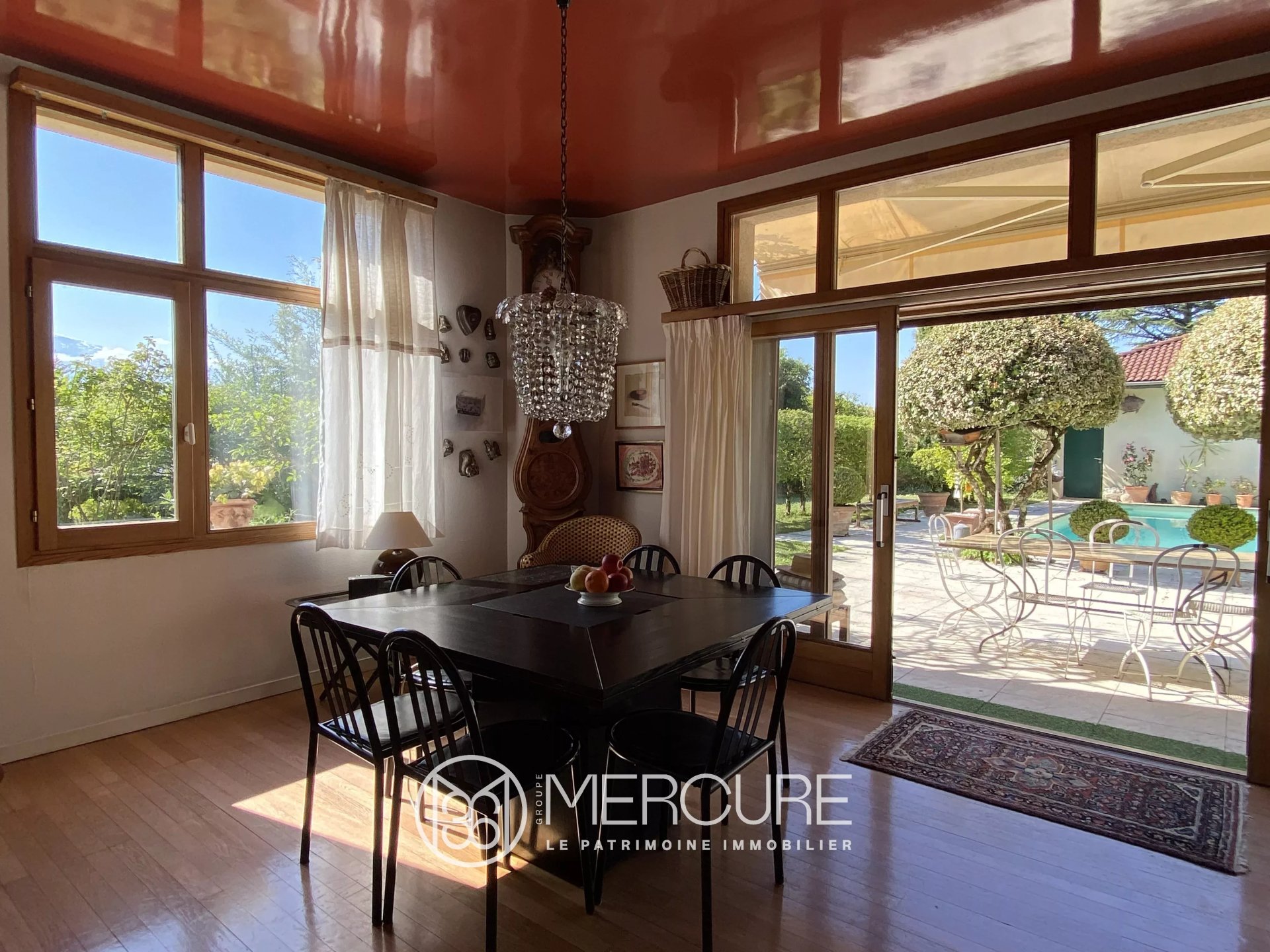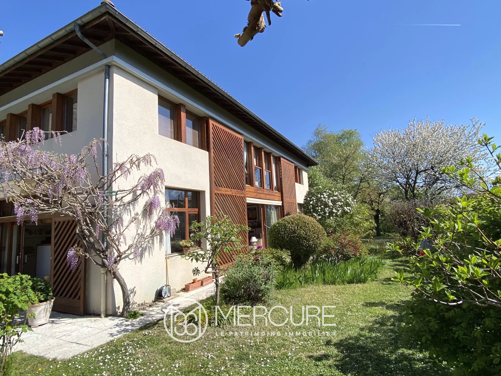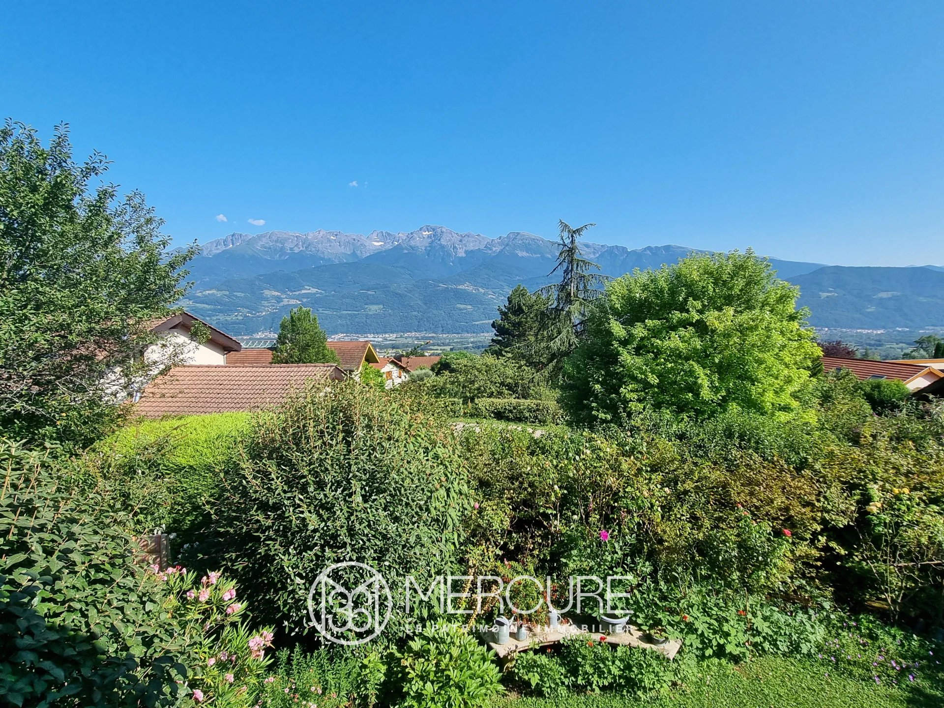 Elégante maison d'architecte de 1988 aux lignes intemporelles positionnée face à Belledonne sur un terrain plat de 1222 m² dont les plantations soignées assurent une vraie intimité.