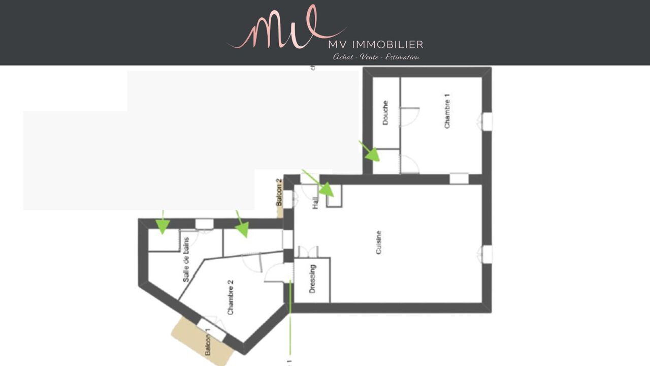L’appartement se compose d’une entrée avec placard mural, d’une cuisine aménagée ouverte sur une pièce de vie de 48 m² avec cheminée décorative et magnifique parquet, d’un cellier avec chauffe-eau, d’une chambre de 11,55 m² avec placard mural donnant accès à un balcon de 2,97 m², d’une SDB de 6,27 m², d’un WC avec placard mural et d’une suite parentale de 11,84 m² avec cellier (chauffe-eau), placard mural et douche.