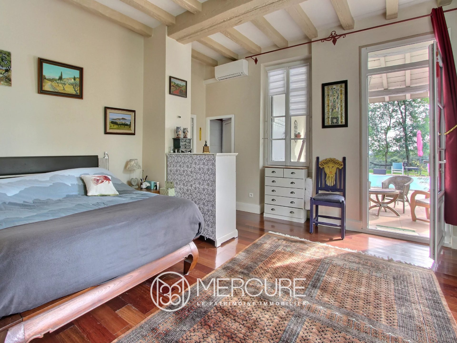 La propriété d’1,6 ha avec parc, jardin et pâtures, 2 puits comprend une piscine chauffée, cuisine d’été, 2 garages, atelier et dépendance en bois avec bûcher et 4 boxes pour chevaux.