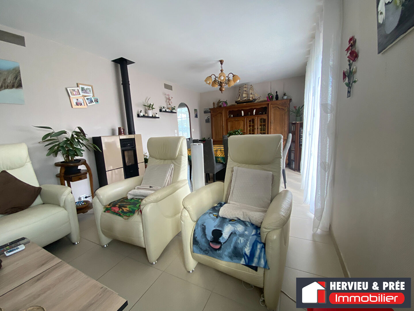 Maison comprenant une entrée desservant un couloir, une salle salon avec poele à pellets, une cuisine aménagée et equipée, deux chambres, une salle d'eau, une véranda.