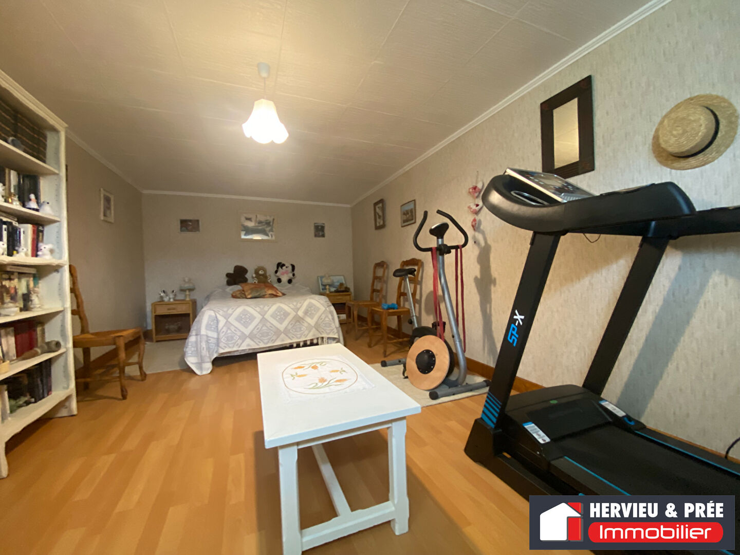 Un sous sol complet comprenant une pièce faisant office de chambre, un coin buanderie, un coin atelier et garage avec porte électrique.