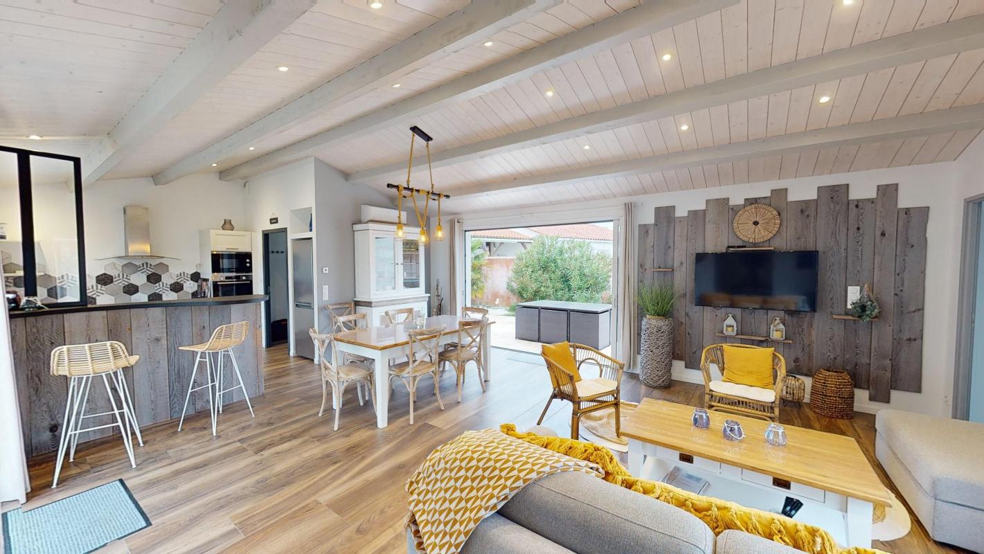 Votre Agence ORPI vous propose de venir découvrir cette magnifique maison a vendre meublée à Saint Martin de Ré, Charente Maritime. Construite en 2018, cette maison récente offre un cadre de vie au calme et sans vis à vis.. Elle dispose de deux chambres , 1 suite parentale avec dressing et salle d'eau avec wc donnant sur un patio , un salon spacieux et lumineux ouvert sur une cuisine équipée et aménagée, un cellier, une salle d'eau, un wc.