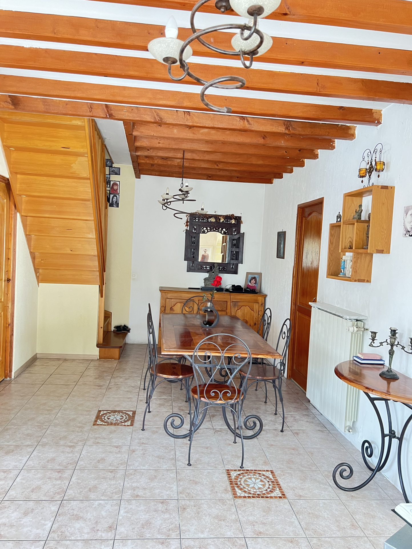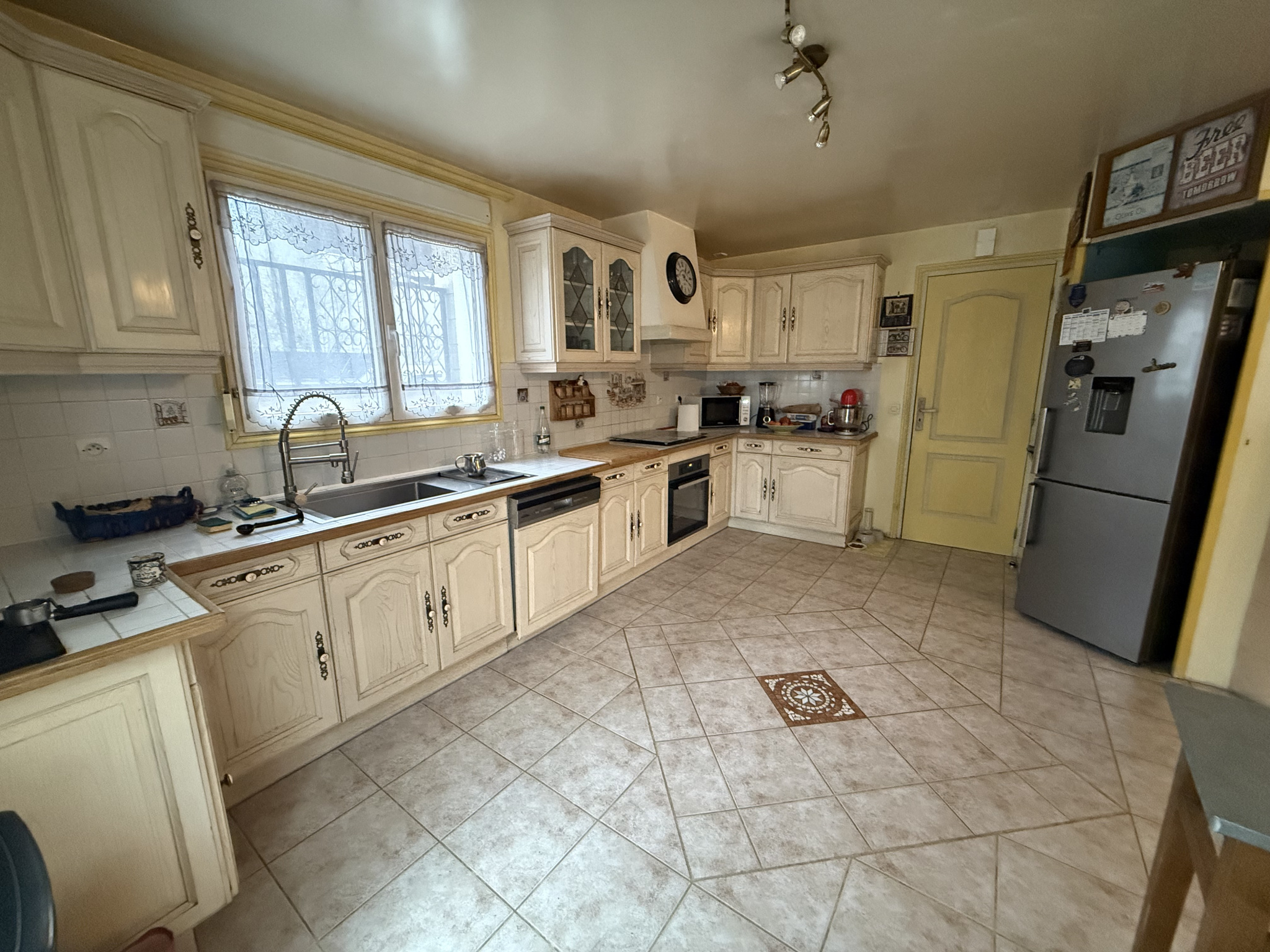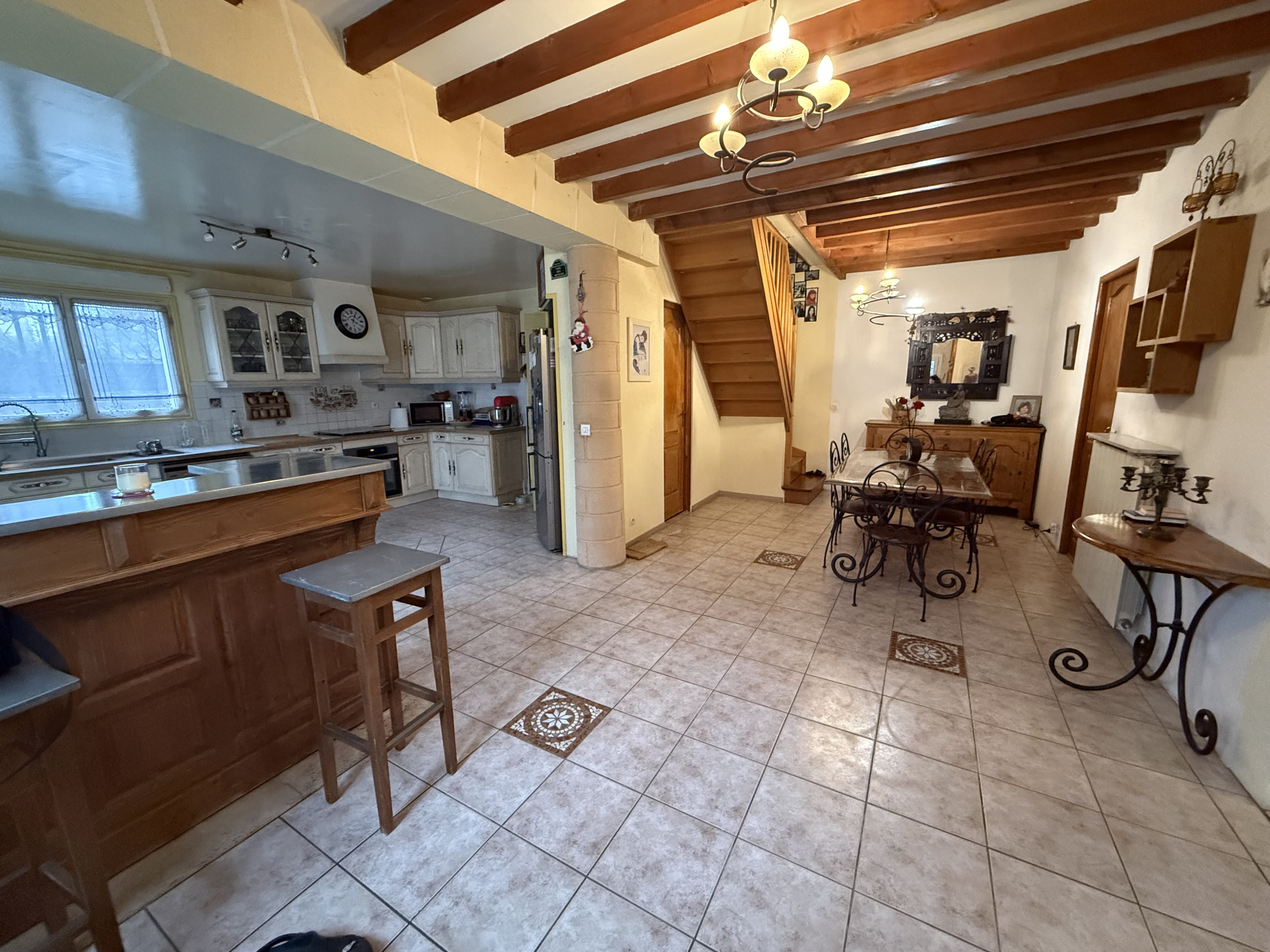 Pavillon édifié sur un terrain de 450 m2, comprenant : Une entrée avec séjour-coin repas, une cuisine équipée donnant sur un cellier, un séjour avec cheminée, un wc.