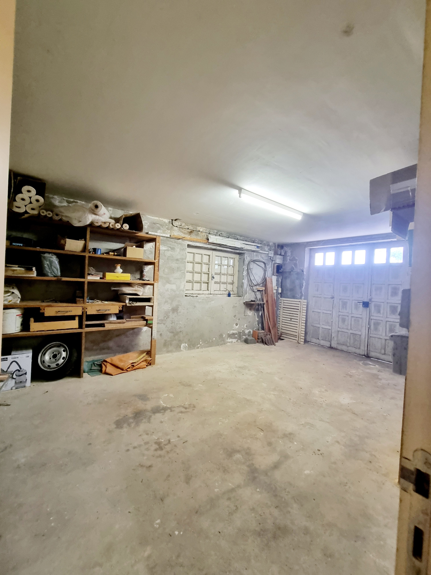 Elle est composée au rez de chaussée d'une entrée, d'une cuisine d'été, d'un bureau, d'un wc, d'un coin chaufferie et de 3 garages (1 de 21 m2, 1 de 30 m2 et 1 de 39 m2). L'étage comprend un dégagement qui dessert: cuisine, salon / salle à manger, 3 chambres (2 avec placard/penderie, 1 avec dressing), salle de bains, wc indépendant; accès dur une terrasse de 32 m2, Simple vitrage, chauffage fuel, Terrain de 600 m2.