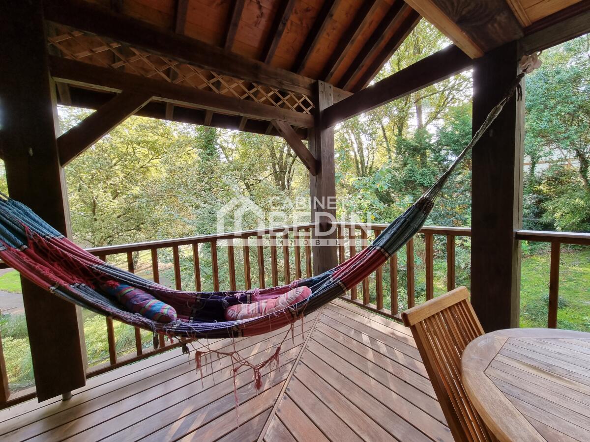 Cette maison en bois sur pilotis porte bien son nom. Découvrez cette maison construite en 2004, d'environ 137m² habitables. Elle dispose d'une belle terrasse couverte le long de la maison. A l'intérieur, vous trouverez un salon-séjour avec poêle à granules, cuisine ouverte, une salle de bains, wc séparé et un cellier.