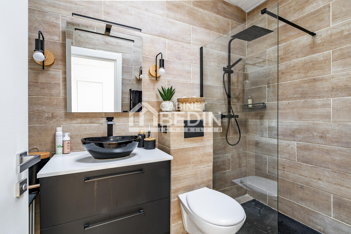 A l'étage, avec vue sur l'estuaire, vous trouverez trois belles chambres de plus de 20 m² et deux salles d'eau pour votre famille ou vos invités.