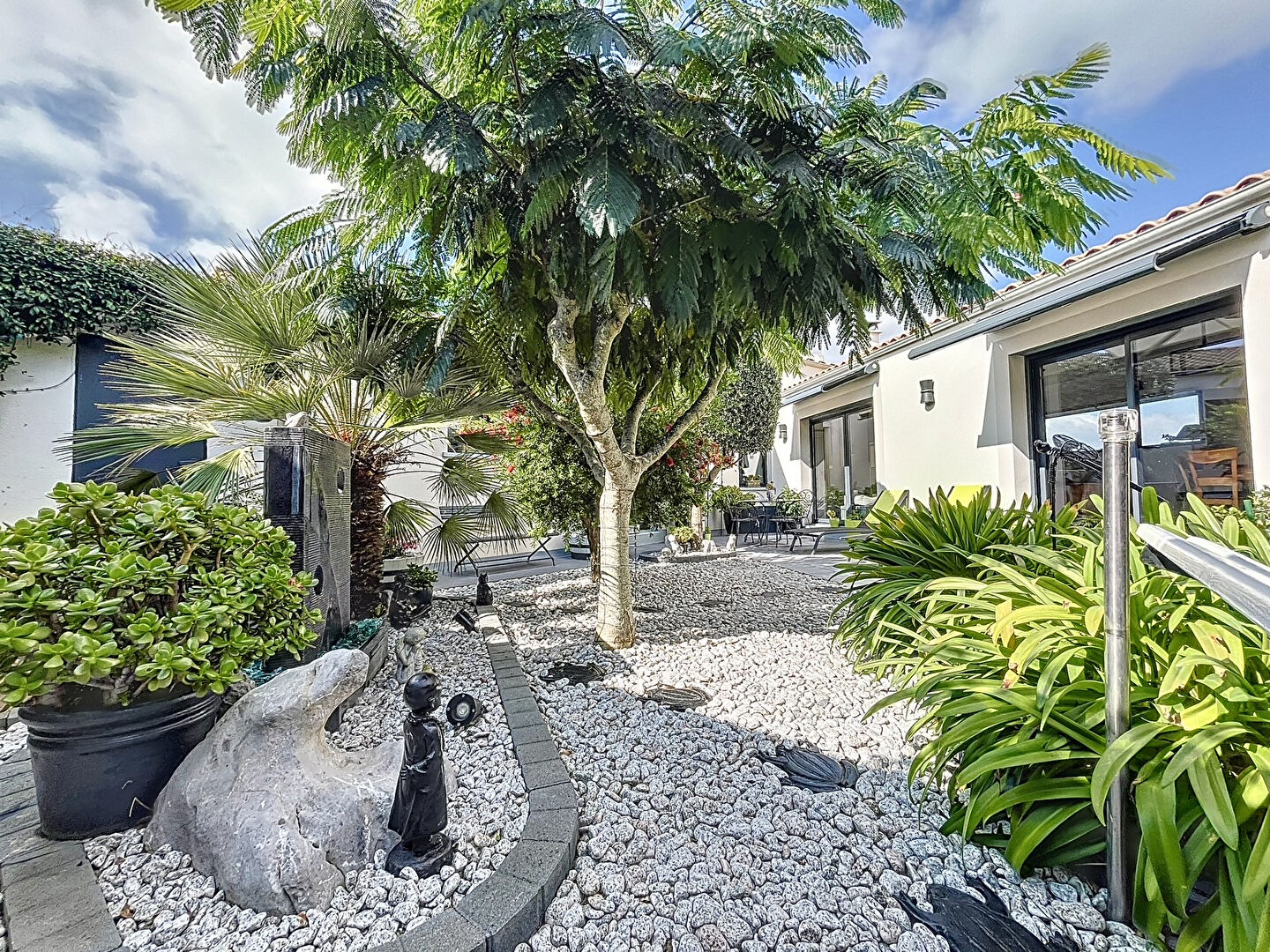 Côté pile : vue sur le patio paysagé,