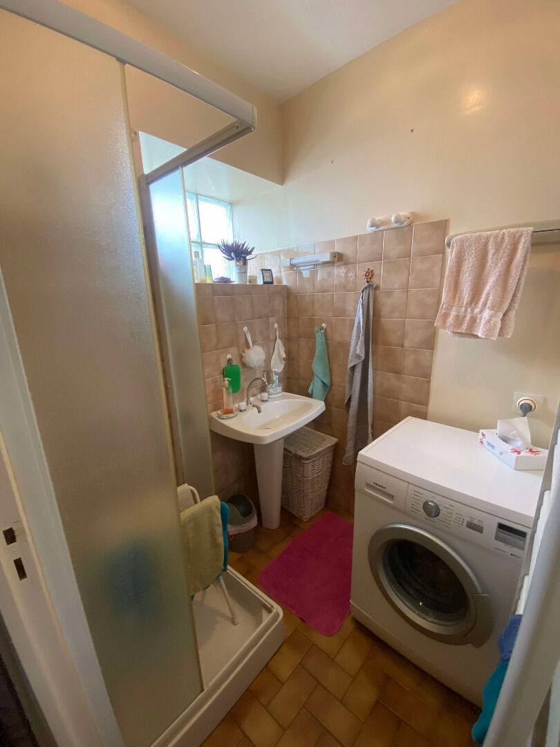 Maison de 100m² habitables, composée au rez de chaussée d'un salon/salle à manger de 32m² avec cheminée, une cuisine, une salle d'eau avec sèche serviette et un WC indépendant.