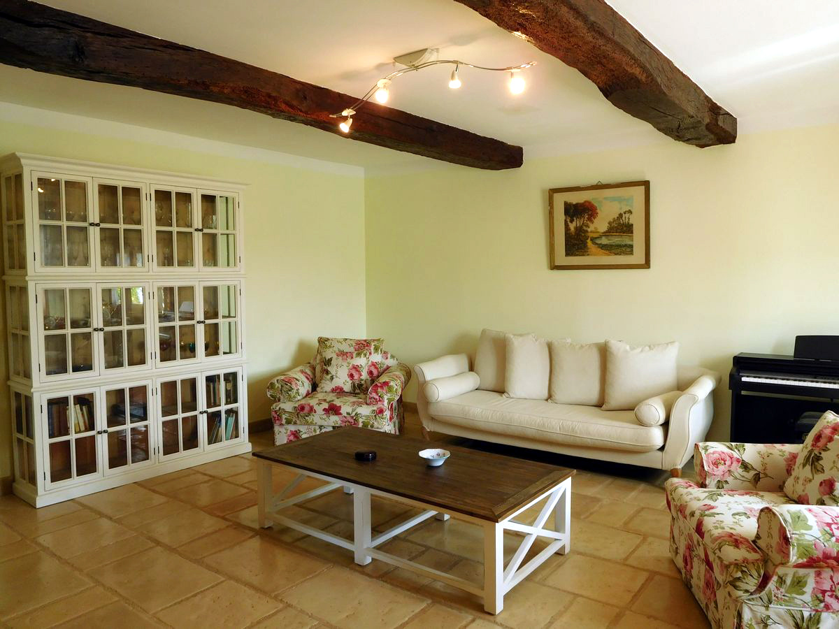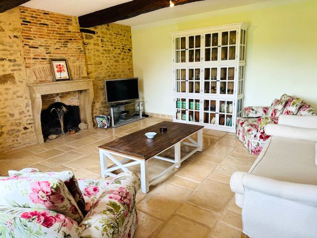 - Au rez-de-chaussée : un grand séjour avec cheminée en pierre avec poêle à bois, un salon, une cuisine équipée, une arrière cuisine, une salle d'eau, un WC et une cave.