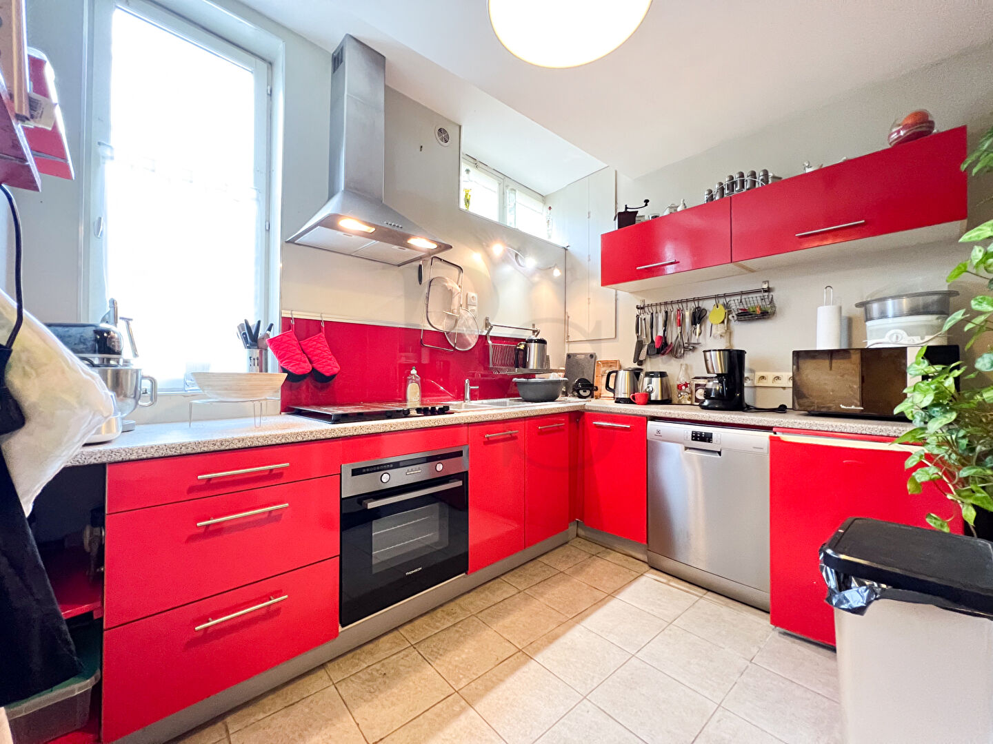 - Au rez-de-chaussée: Une jolie pièce de vie avec poêle à granulés, une cuisine aménagée équipée et un WC.