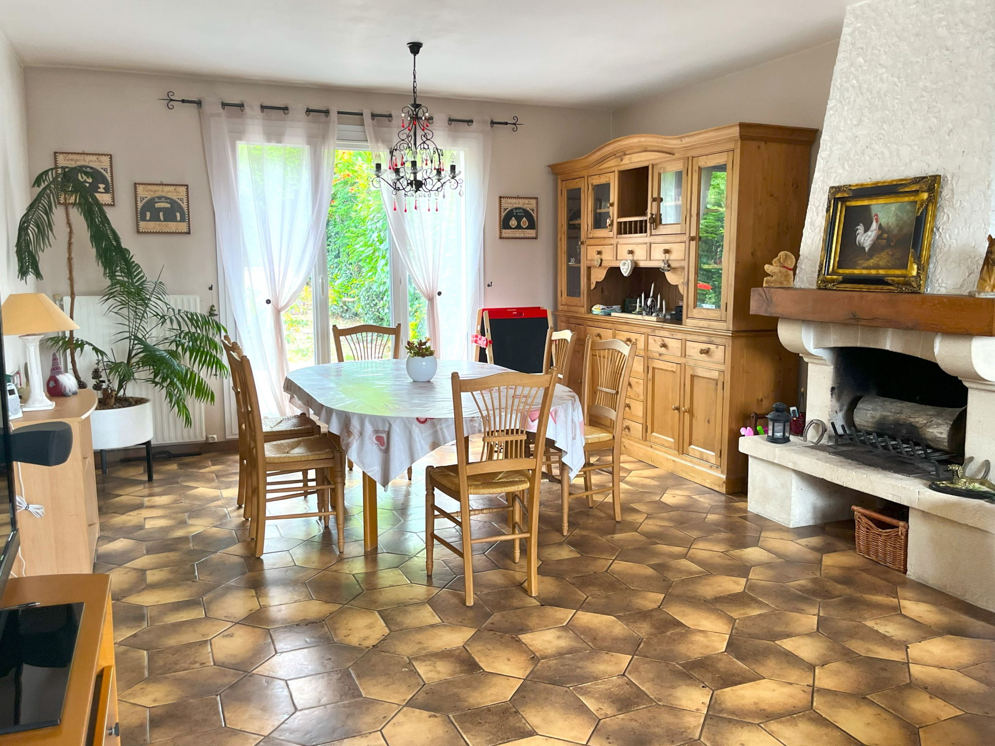 - un rez-de-jardin avec un palier, un double salon / salle à manger doté d'une cheminée et très lumineux grâce à sa double exposition, une cuisine équipée séparée avec de nombreux rangements, un WC séparé avec lave-main. Les pièces de vie offrent un accès direct sur la terrasse, au pied du jardin, ainsi qu'une vue sur la vallée.