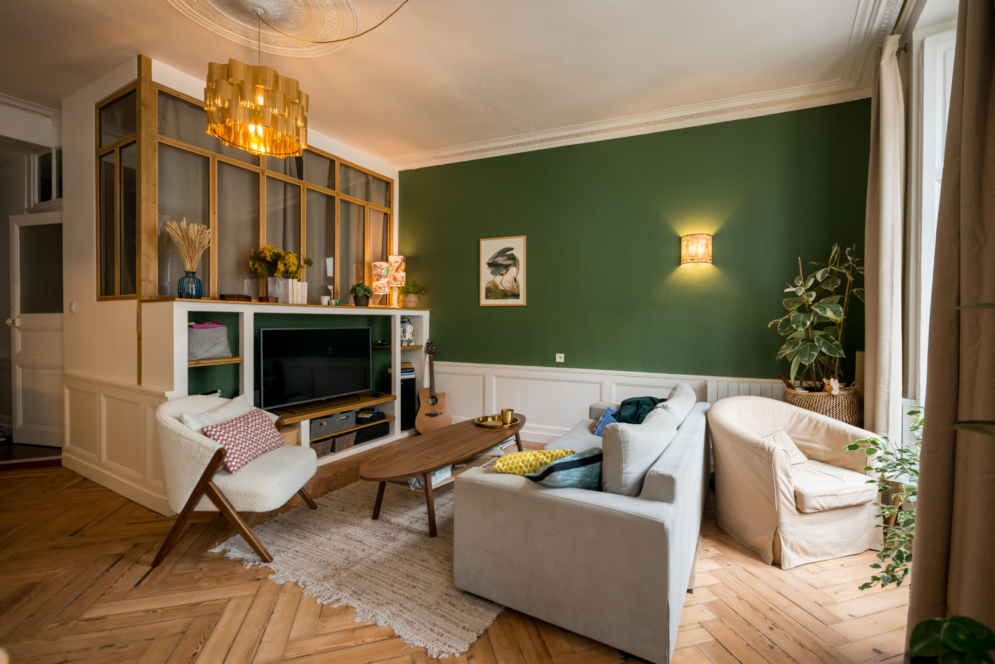 Parquet ancien, moulures, cheminée en marbre; autant d'éléments d'époque qui ont été sublimés lors de la rénovation de cet appartement !