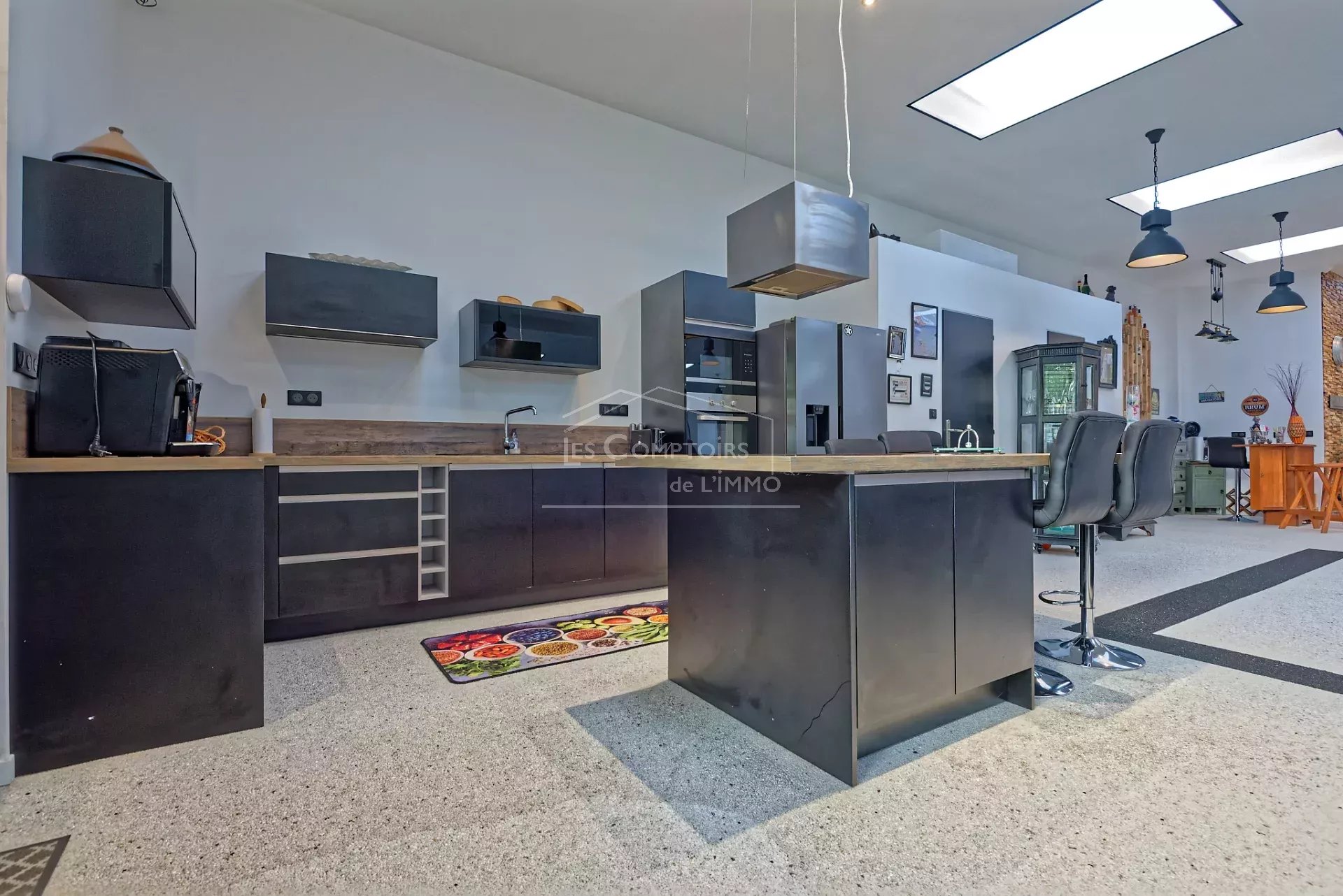 Édifié en 2021 avec des matériaux de qualités, sur la base d'un hangar des années 70, le bien offre de très bonnes performances énergétiques malgré son grand volume (voir DPE).