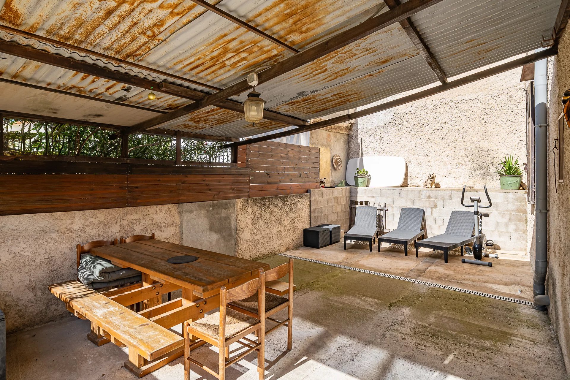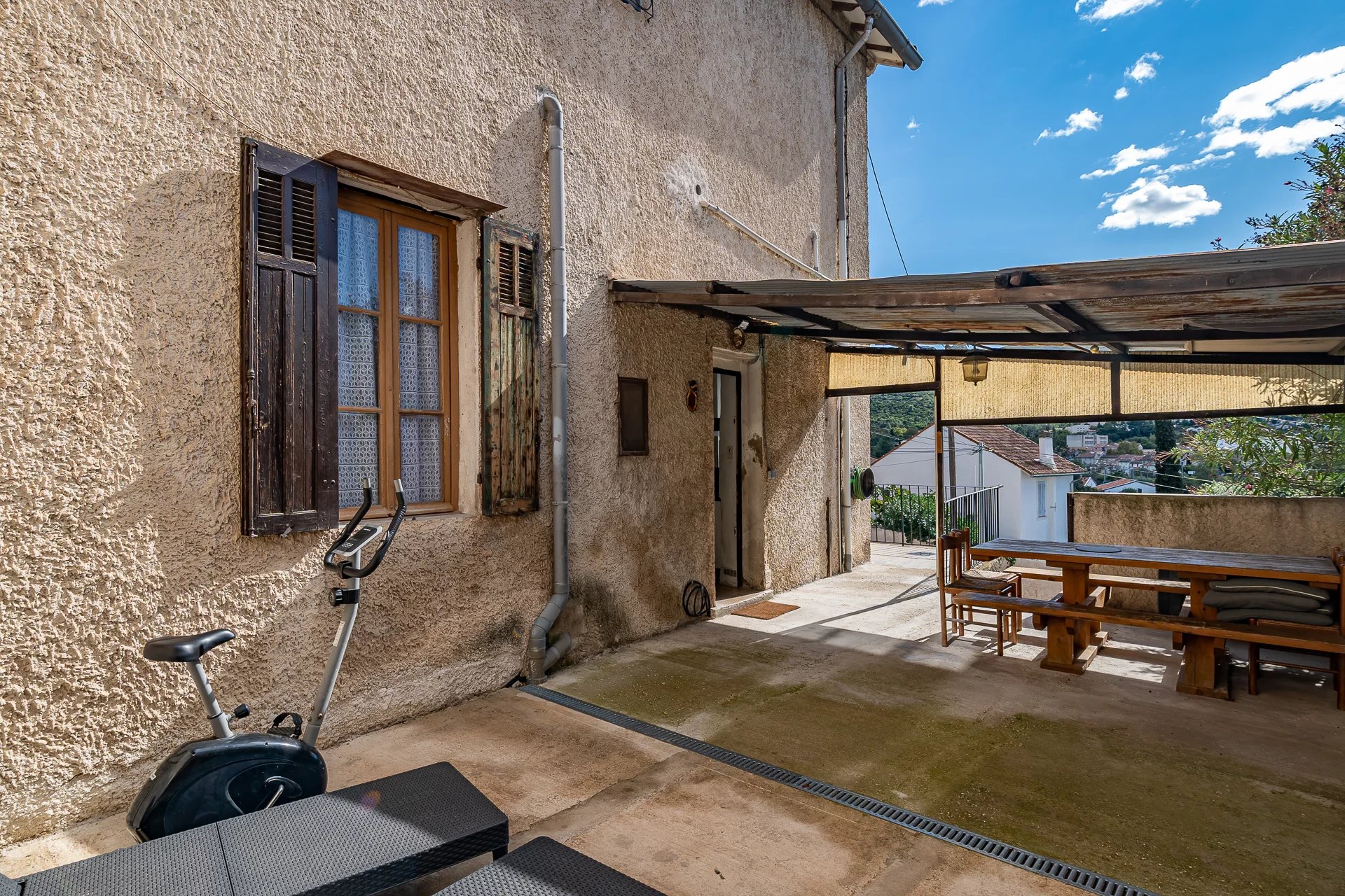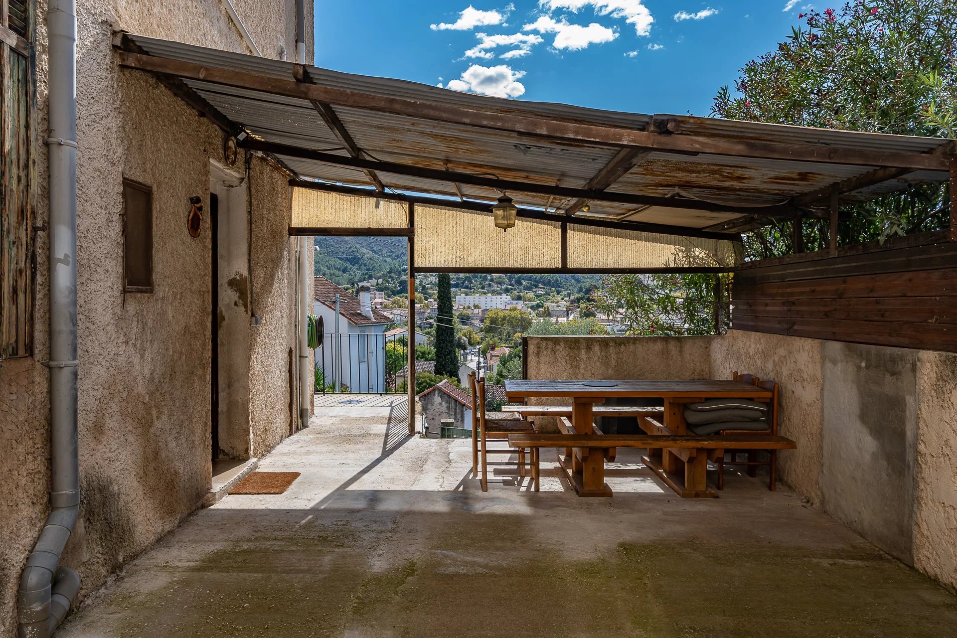 Il dispose d'un vaste jardin de 170m² piscinable et d'une belle terrasse de 50m² offrant une vue dégagée sur les collines.