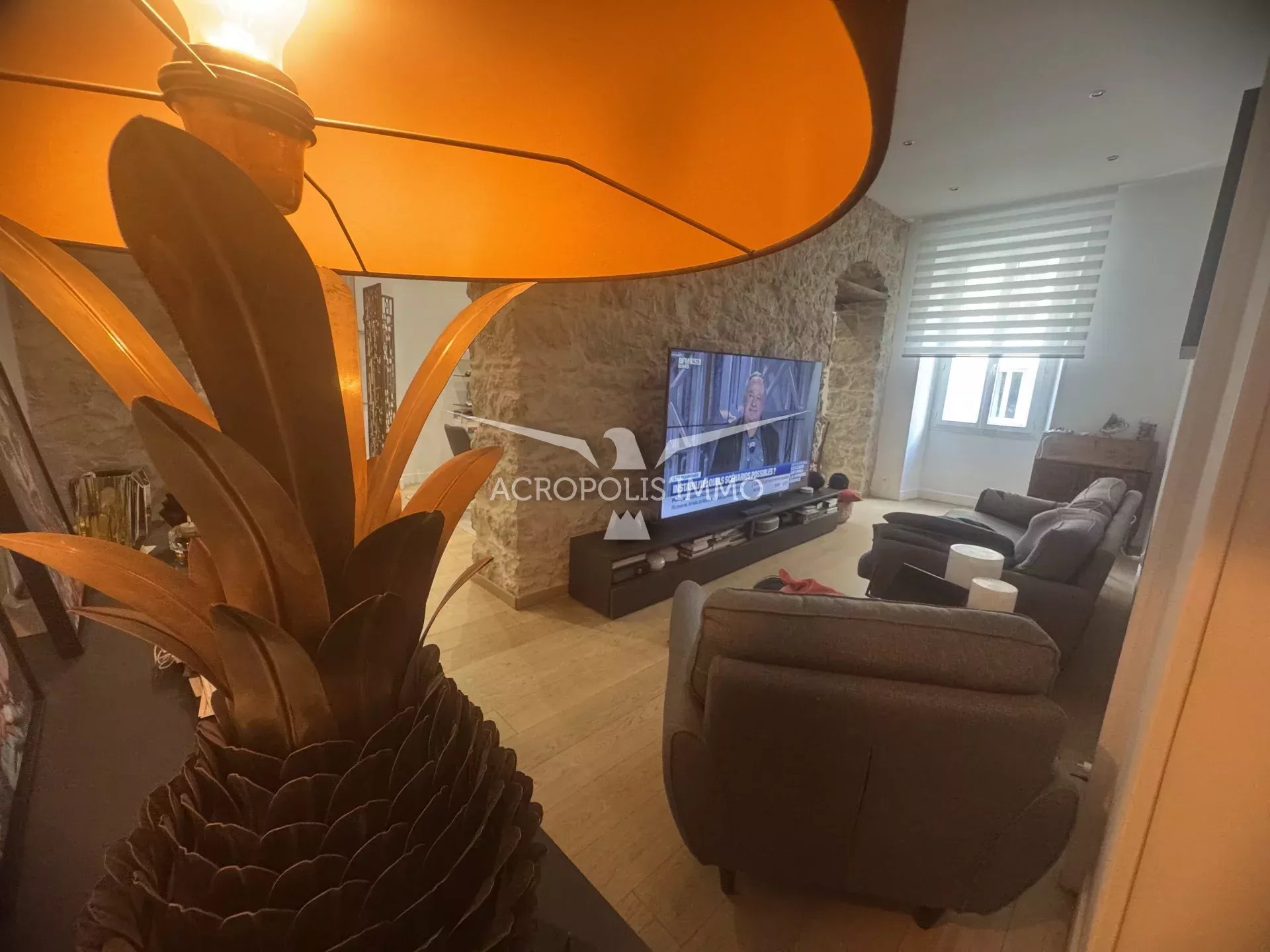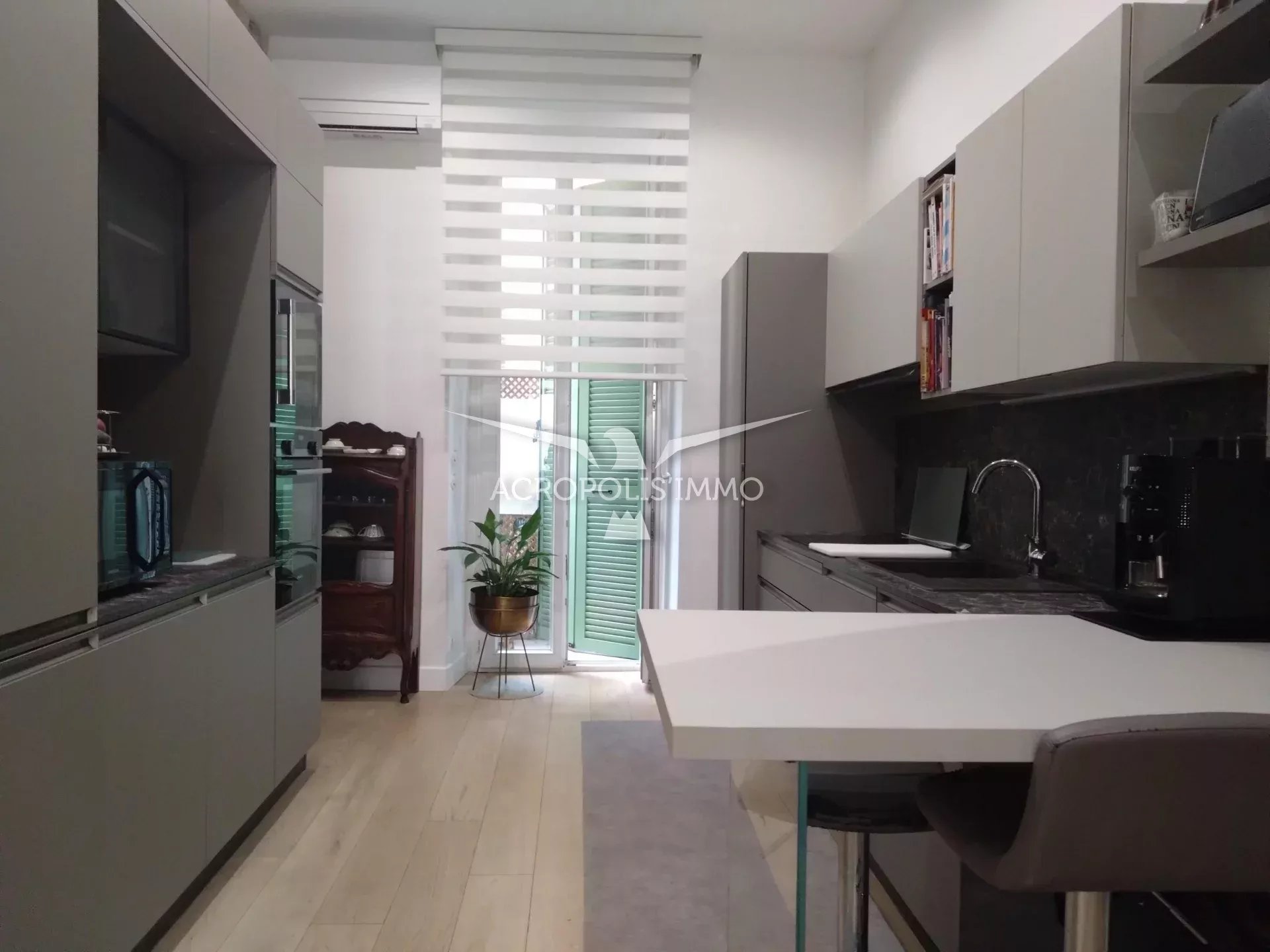Exceptionnel, Bavastro, proche église du port et place du pin, écoles et commodités, Bel appartement, 97.70 m2 (carrez), très belle hauteur de plafond. entièrement rénové avec goût, murs pierres apparentes, traversant, climatisé, double vitrage, composé d'une entrée, un séjour, un cuisine équipée, un salon, 3 chambres dont 2 avec mezzanine, un bureau avec mezzanine, une salle de bains, un wc indépendant. une jolie terrasse sur cours au calme,