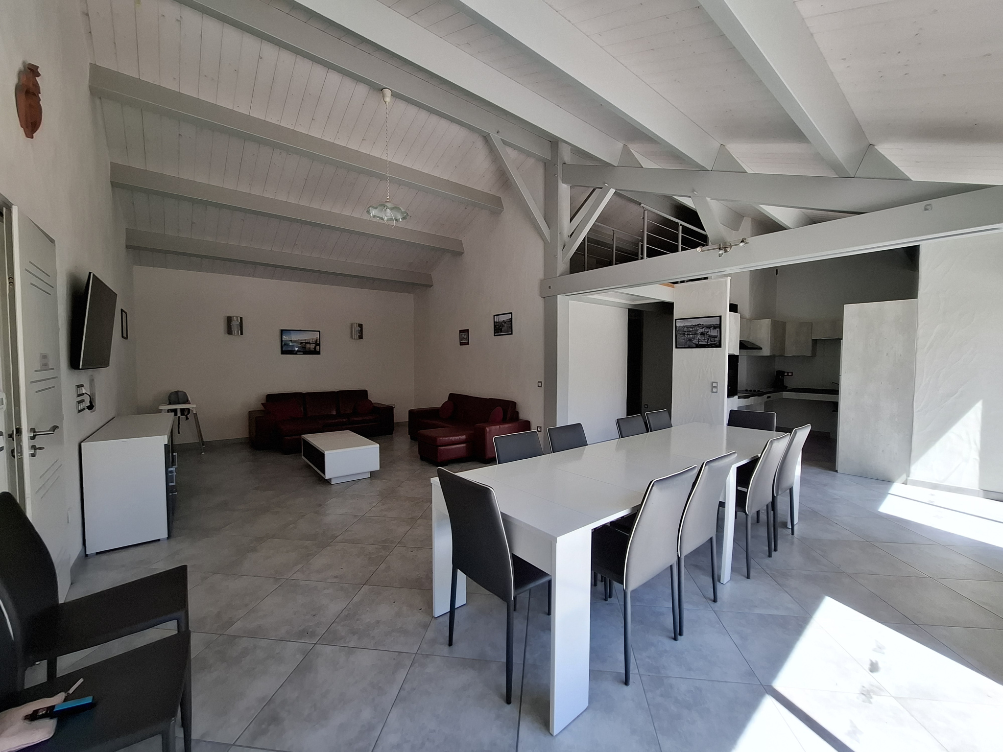 Une impressionnante salle en pierres apparentes attenante à la pièce de vie, avec accès direct à une grande terrasse carrelée de 79 m2 et son bar extérieur un véritable havre pour vos réceptions d'été.