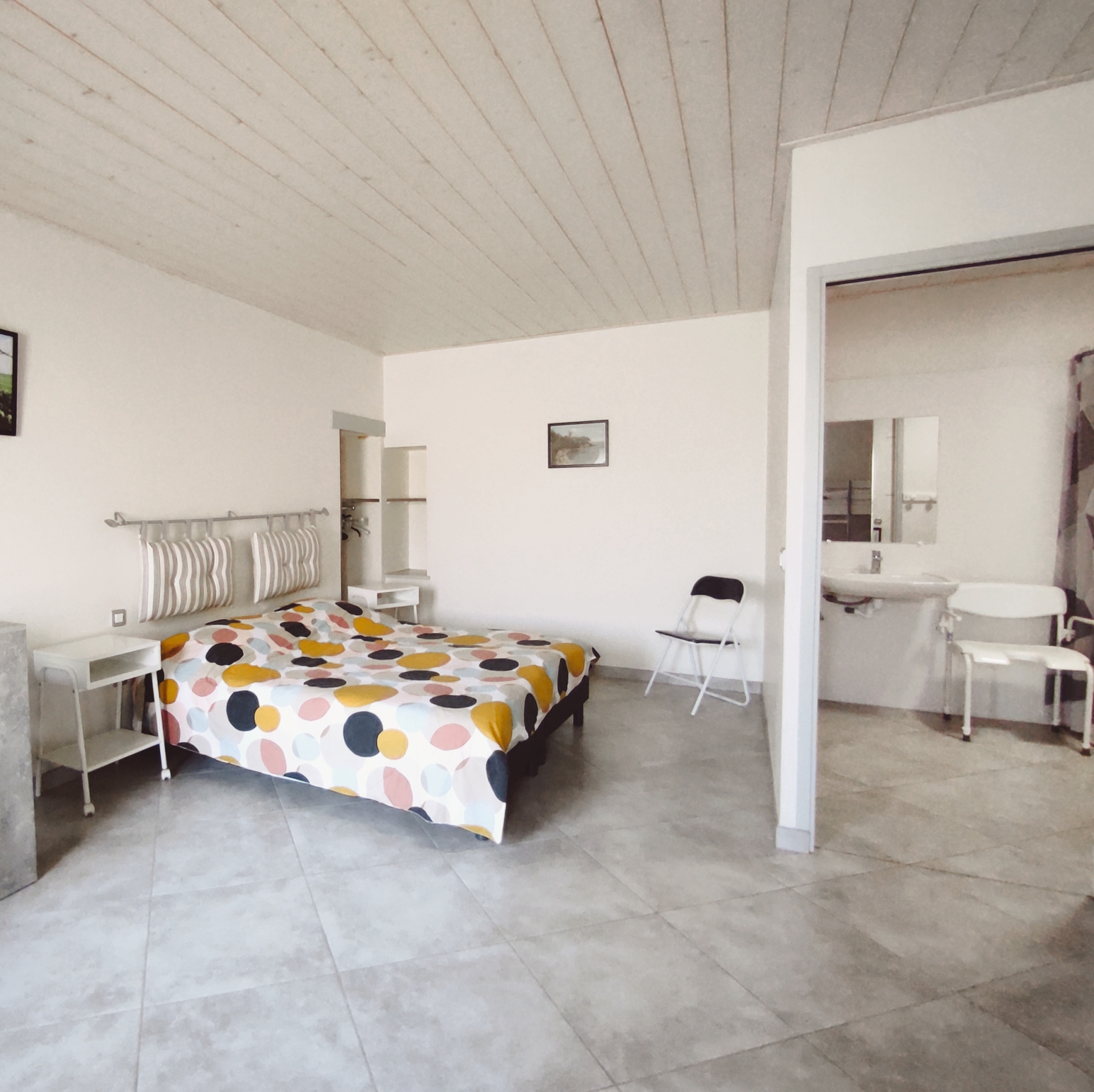 Une grande chambre d'environ 30 m2, divisible en deux espaces, avec douche et WC privatifs