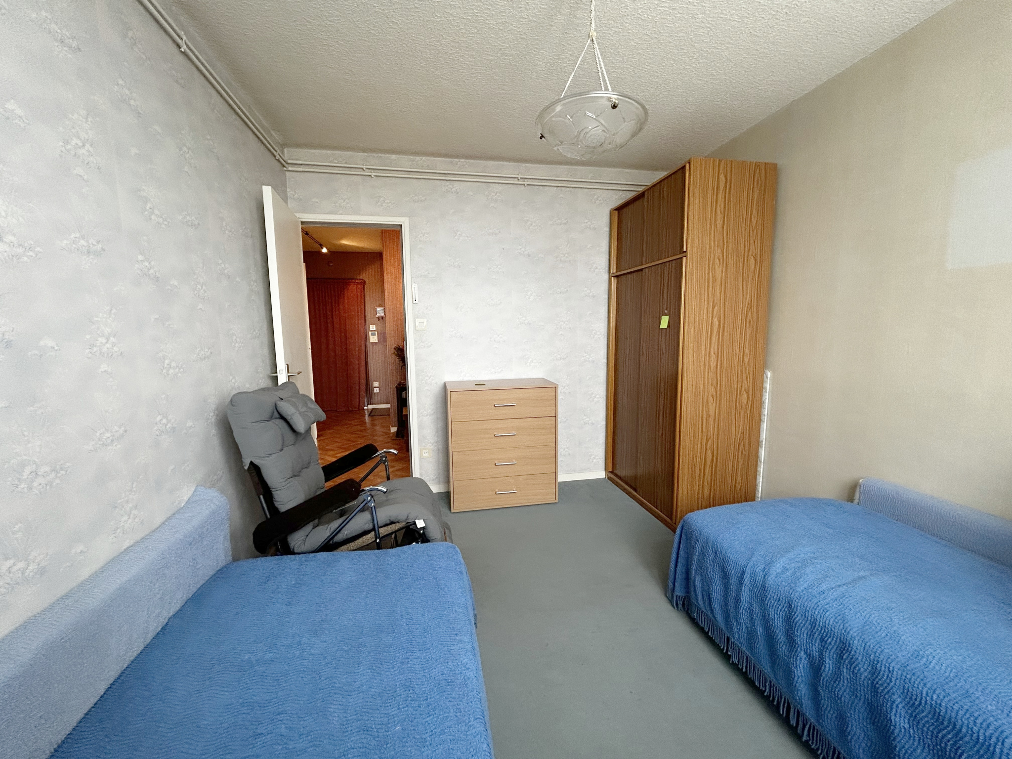 Une salle de bains, des WC séparés. 2 chambres dont une donnant sur le balcon.