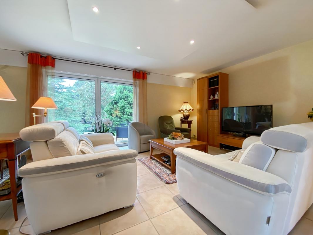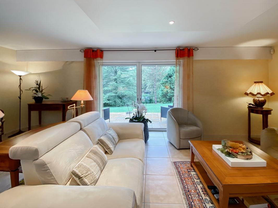 Au rez-de-chaussée : une entrée desservant à gauche le coin jour avec un très grand séjour-salon avec une vue imprenable sur le parc, une salle à mangée baignée de lumière, une cuisine aménagée très fonctionnelle. Sur la droite de l'entrée, le coin nuit, une chambre parentale avec salle de bains (douche, baignoire, w.c et double vasque), une seconde chambre avec salle d'eau privative, un pièce dressing (dont la surface permet une utilisation en chambre), un bureau (dont la surface permet une utilisation en chambre) et un w.c indépendant avec lave-mains.