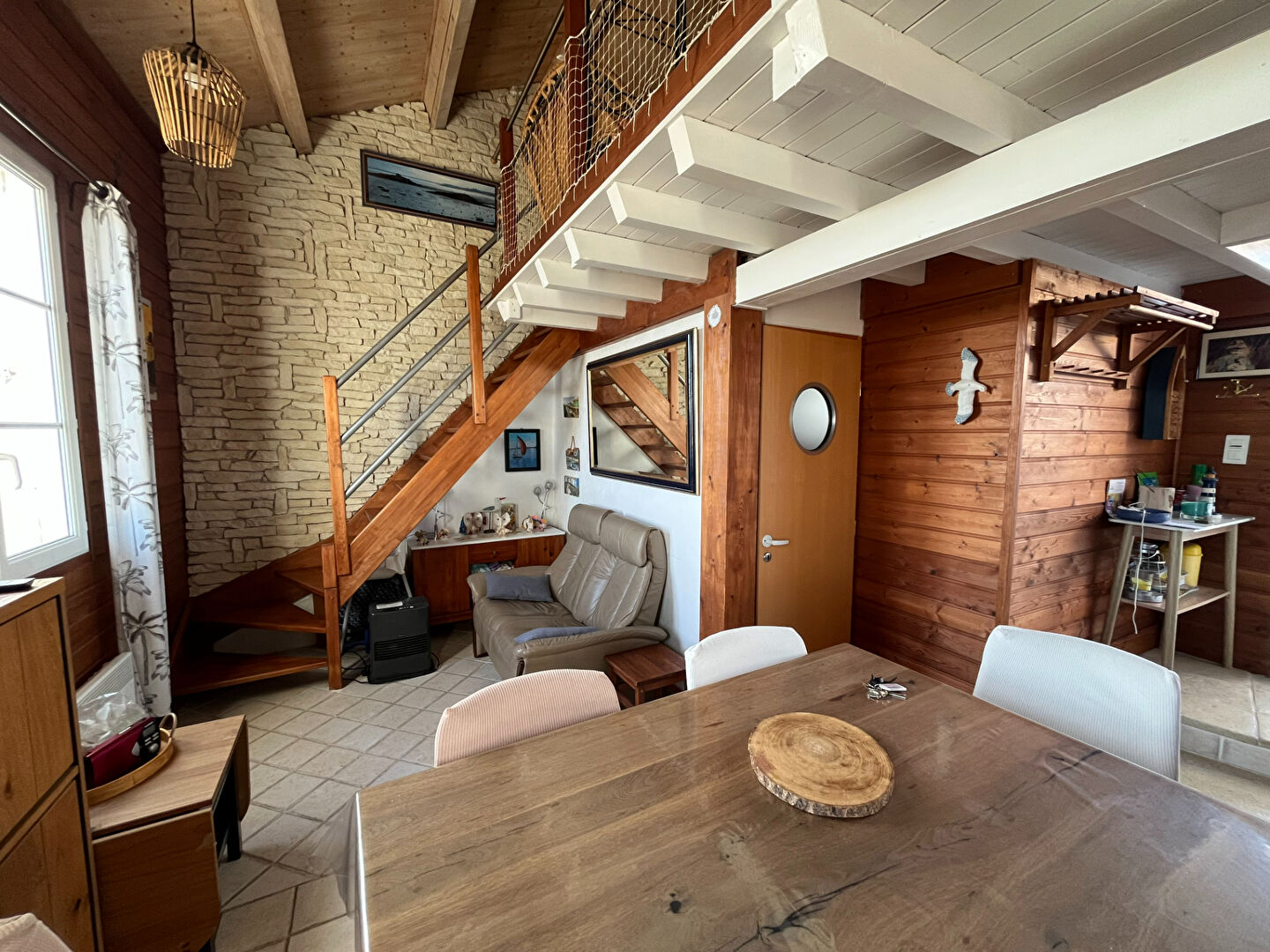 VUE MER ET CHENAL - Côte Est, à 100 m des commerces et du port de plaisance, dans un ensemble immobilier de 7 lots, APPARTEMENT, situé au deuxième étage, d'une surface de 40,30 m² (loi Carrez) comprenant un séjour avec coin-cuisine, deux chambres dont une mansardée, une mezzanine, une salle d'eau, des wc séparés - Une terrasse de 40 m² environ - Chauffage électrique - Garage à vélos commun - Charges de copropriété : 345 Euro/an - Bon rapport locatif