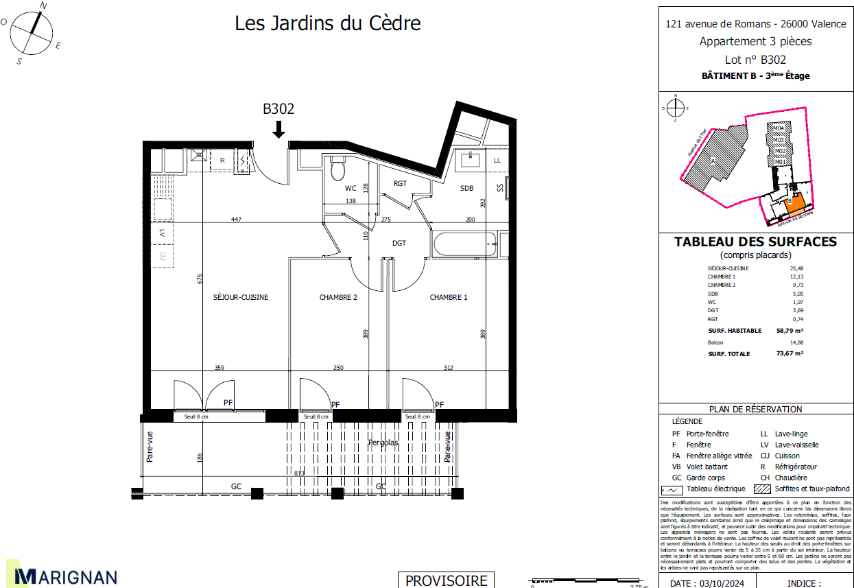 Découvrez la Résidence 'Les Jardins du Cèdre' à Valence ! Située Avenue de Romans et Avenue de l'Yser, Les Jardins du Cèdre vous offre un cadre de vie proche de toutes les commodités à Valence dans un magnifique îlot paysager, véritable havre de paix arboré, surmonté d'un cèdre centenaire composeé d'appartements allant du 2 au 4 pièces et de 4 maisons 5 pièces. Tous les logements sont prolongés par un espace extérieur privatif et dotés d'un parking en sous-sol. Le coeur de notre projet : , qui confère à notre résidence un caractère unique et authentique. Un lieu où modernité, confort et praticité s'harmonisent pour répondre à tous les styles de vie Les plus de ce programme neuf : Personnalisation des intérieurs pour un logement à votre image, places de stationnement en sous-sol et espaces vélos sécurisés, des équipements modernes et des garanties solides pour un achat serein, énergie performante : chaudières individuelles gaz à condensation, et respect de la norme RE 2020 pour des économies d'énergie, intérieurs élégants : parquet stratifié dans les chambres, carrelage en grès cérame dans les pièces à vivre, faïences murales dans les salles de bains, volets roulants, confort et sécurité : accès sécurisé avec vidéophone et Vigik, ascenseurs desservant tous les étages et éclairage des parties communes avec détecteurs de présence. Les informations sur les risques auxquels ce bien est exposé sont disponibles sur le site Géorisques : www.georisques.gouv.fr . Vous pouvez réserver votre futur appartement par l'agence DE MAISON PIERRE. Plan et prix pour le B101. Livraison prévue au 3eme trimestre 2027.