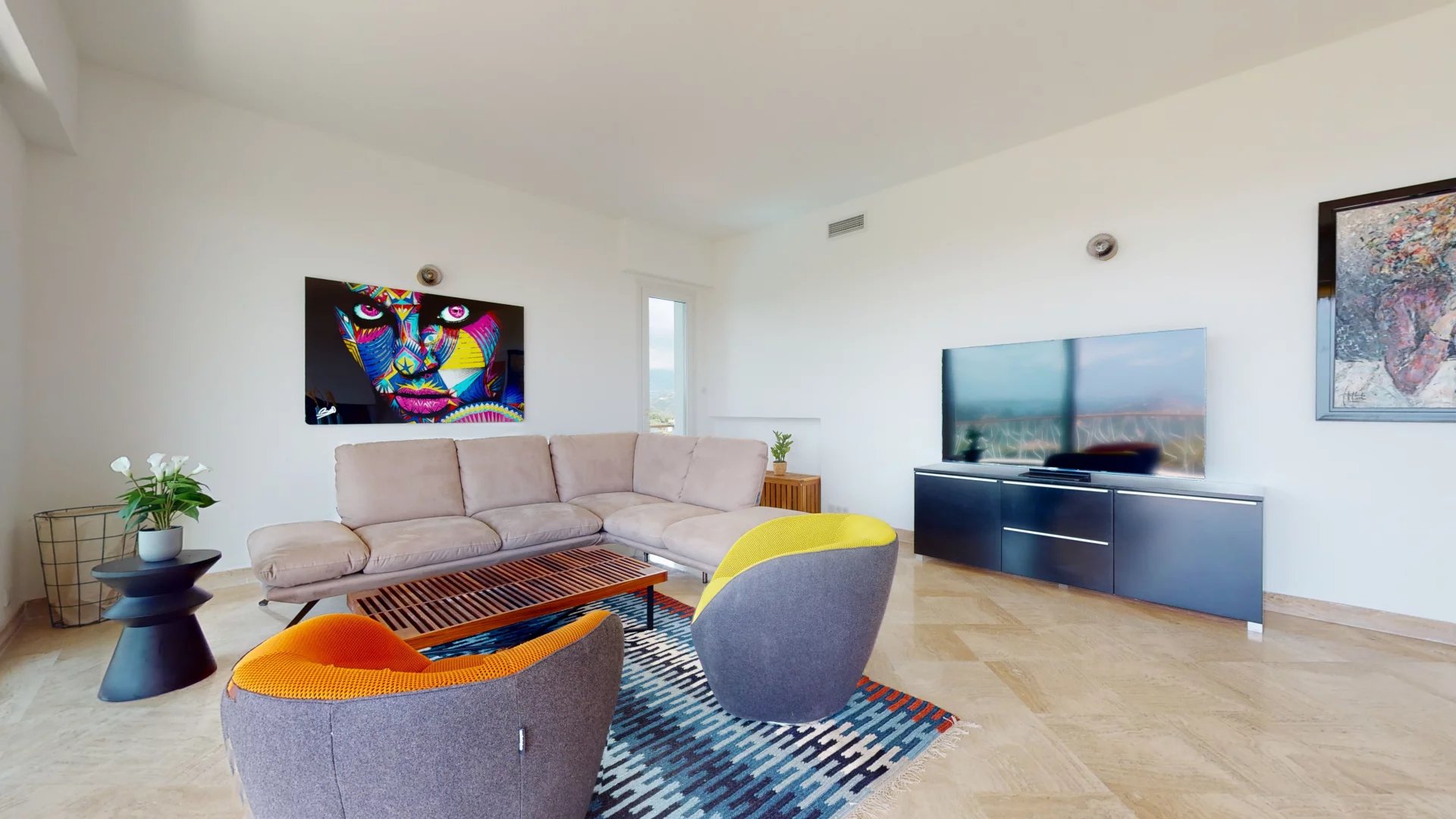 Cagnes sur Mer proche du musée Renoir, superbe villa californienne aux prestations intérieures soignées et irréprochables, offrant une vue panoramique mer, ville, château et collines environnantes.