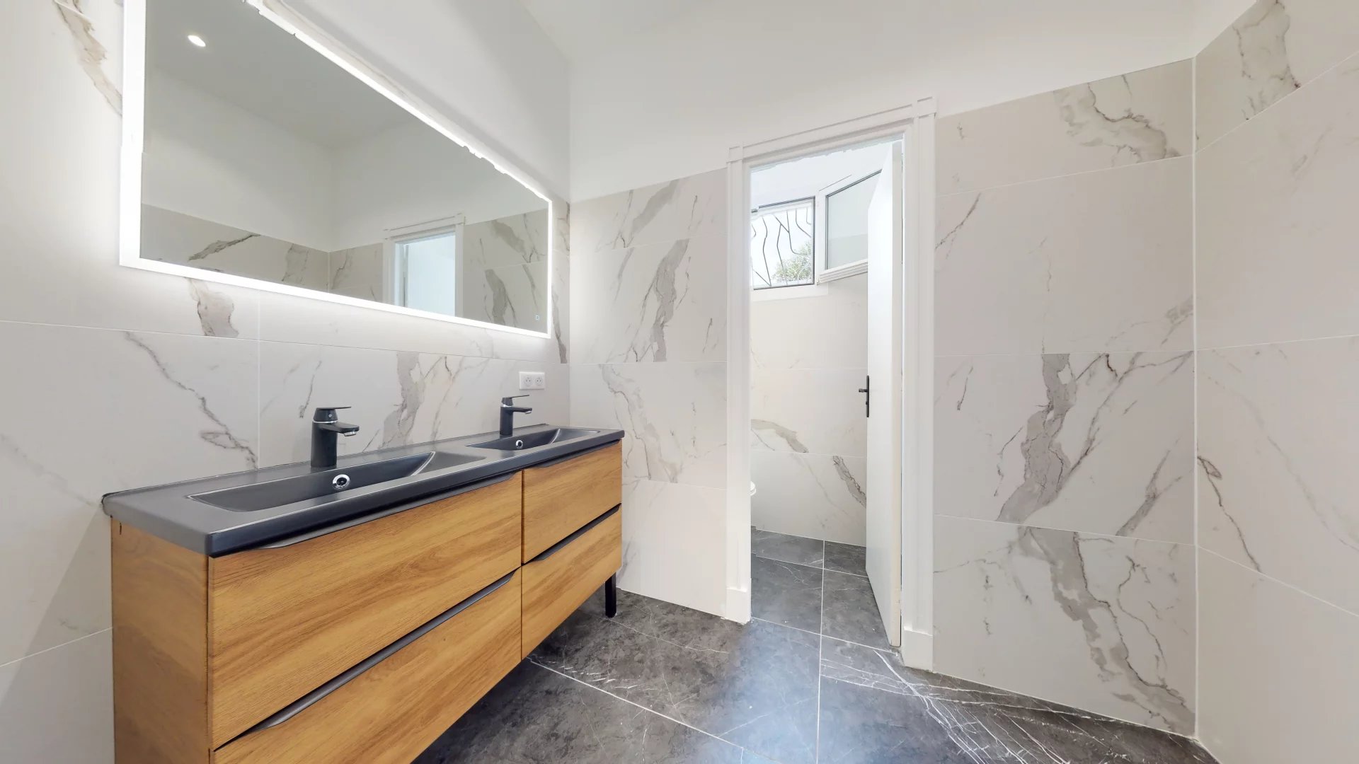 3chambres avec salle d'eau, dressing salle de fitness, garage et accès au jardin de 1500m² avec piscine et sa plage ou vous continuerez de vous prélasser.