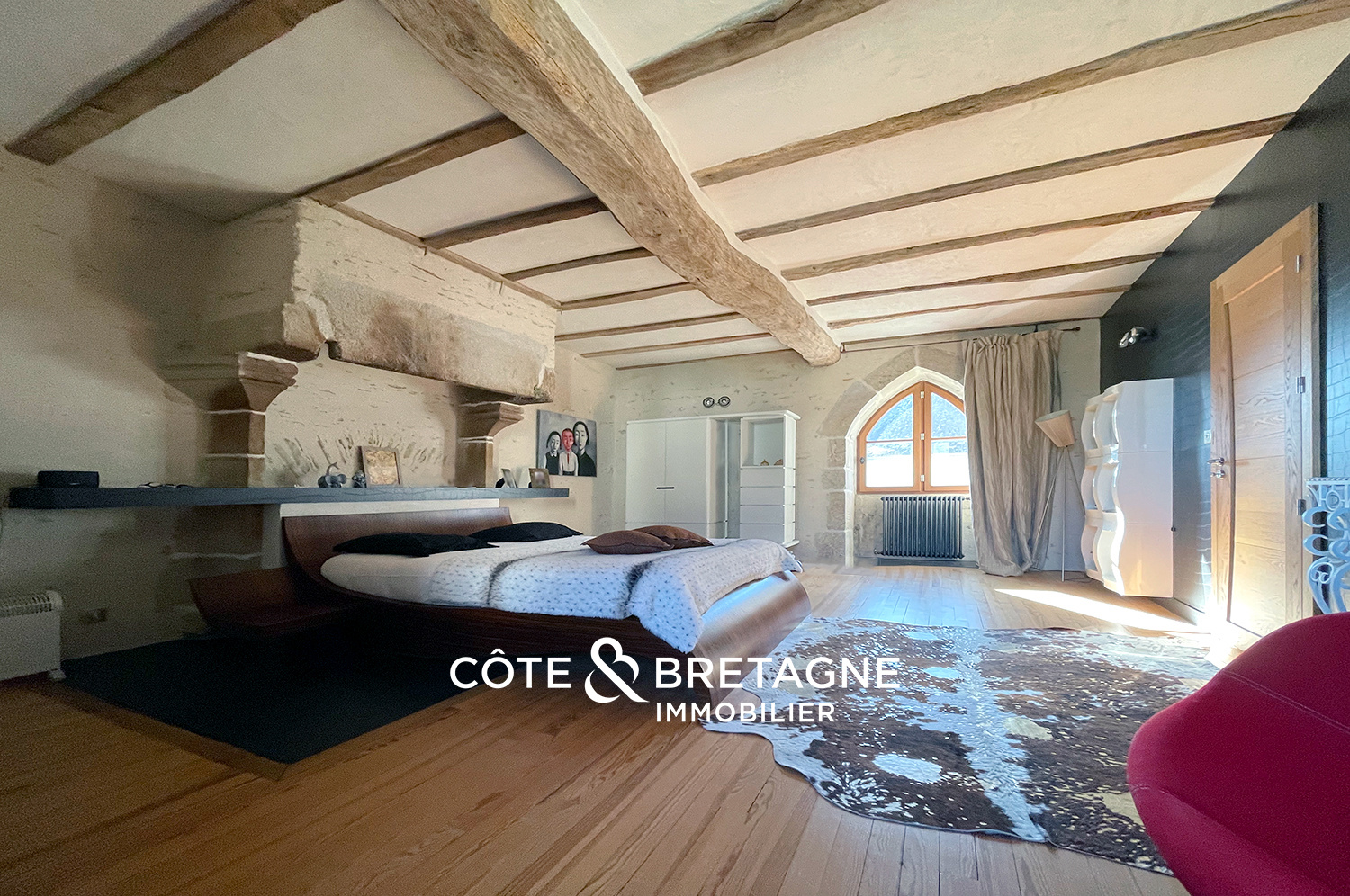 En plein coeur d'Ambon, cette demeure du XVIe siècle saura vous séduire par ses espaces et sa magnifique restauration. D'une surface habitable de 290 m2, elle propose environ 330 m2 de surface à vivre. Dès l'entrée, vous serez conquis par l'esprit raffiné du lieu mêlant le charme de l'ancien avec tout le confort moderne. Les plafonds avec poutres apparentes, les portes voûtées en pierre et le sol en béton ciré se marient harmonieusement et invitent à la convivialité. Le salon avec sa belle cheminée en pierre équipée d'un foyer à insert offre un espace chaleureux. Il donne accès au jardin entièrement aménagé en terrasse à l'ambiance bucolique. La spacieuse cuisine a été pensée comme une deuxième pièce de vie dans laquelle il est agréable de se retrouver en famille ou entre amis. Elle se prolonge par un espace cellier buanderie. Des toilettes viennent compléter ce niveau. L'escalier en bois aux marches cérusées conduit à une deuxième terrasse exposée plein sud, ainsi qu'aux étages supérieurs. Le premier niveau ouvre sur un grand couloir qui dessert d'un côté une grande chambre et de l'autre la vaste suite parentale avec sa salle d'eau. Toutes deux possèdent de larges cheminées en pierre intégrées comme éléments de décoration, l'une abrite un bureau, l'autre la tête de lit. On retrouve également des toilettes séparées à ce niveau. L'étage suivant accueille un grand espace pensé comme un salon télé avec sa large banquette installée sous les fenêtres. Le côté nuit dispose de quatre chambres avec une salle de bains avec WC. Le dernier niveau déploie quant à lui, une chambre et un espace de jeu et offre la vue sur la rivière de Pénerf. La maison bénéficie en outre d'une cave. Cette belle demeure familiale vous offrira le Cadre de vie idéal, proche des écoles, de toute commodité et des plages d'Ambon. Cet ancien village paludier situé au nord de Damgan est un véritable concentré de Bretagne : littoral aux plages de sable blanc, campagne verdoyante et falaises escarpées ! Entre balades dans les marais salants, prés et bois et les nombreuses activités nautiques, les amoureux de la nature sauront y trouver leur bonheur.