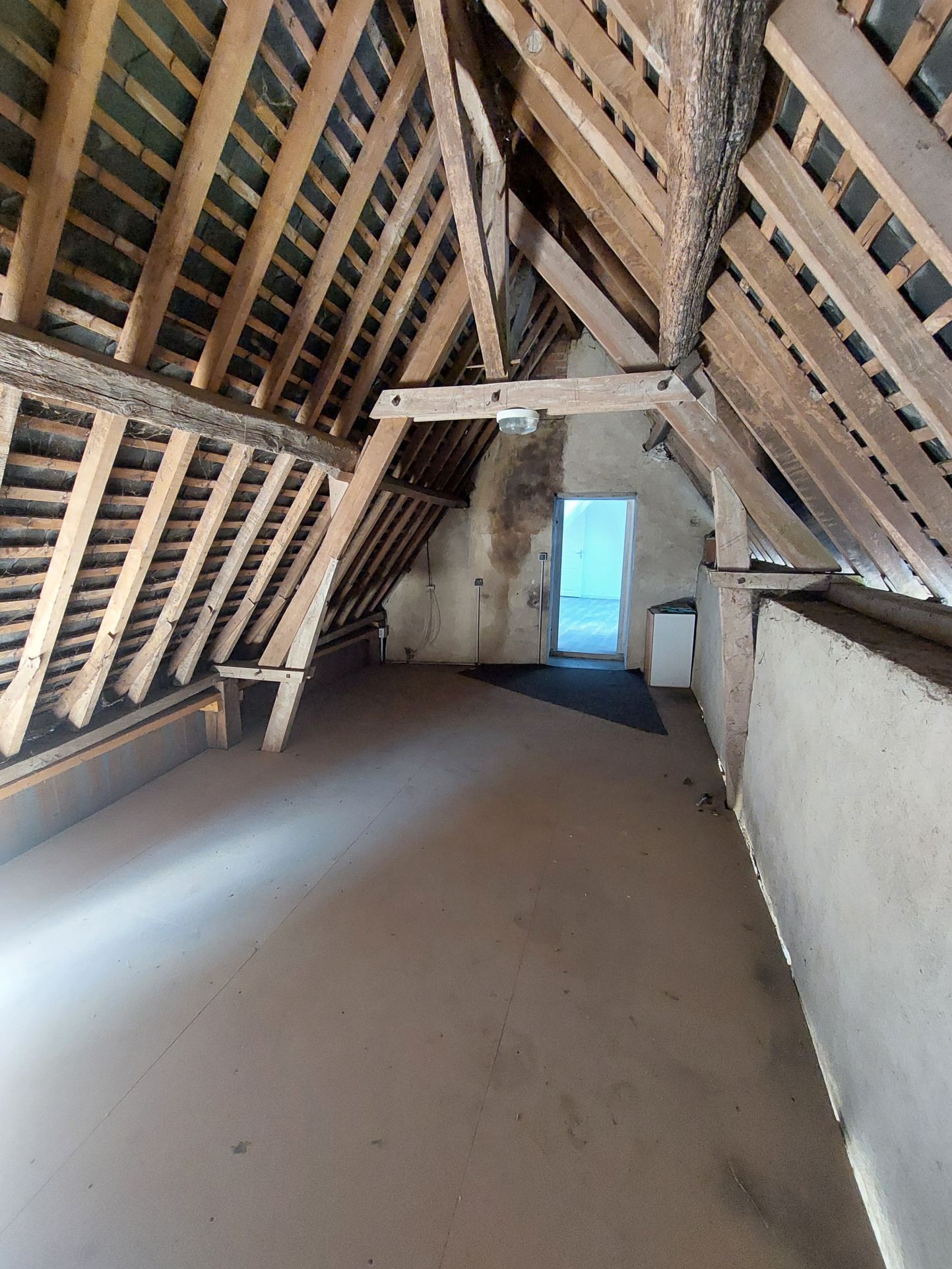 A l'étage, une salle de bain avec WC, trois chambres et une partie grenier aménageable.