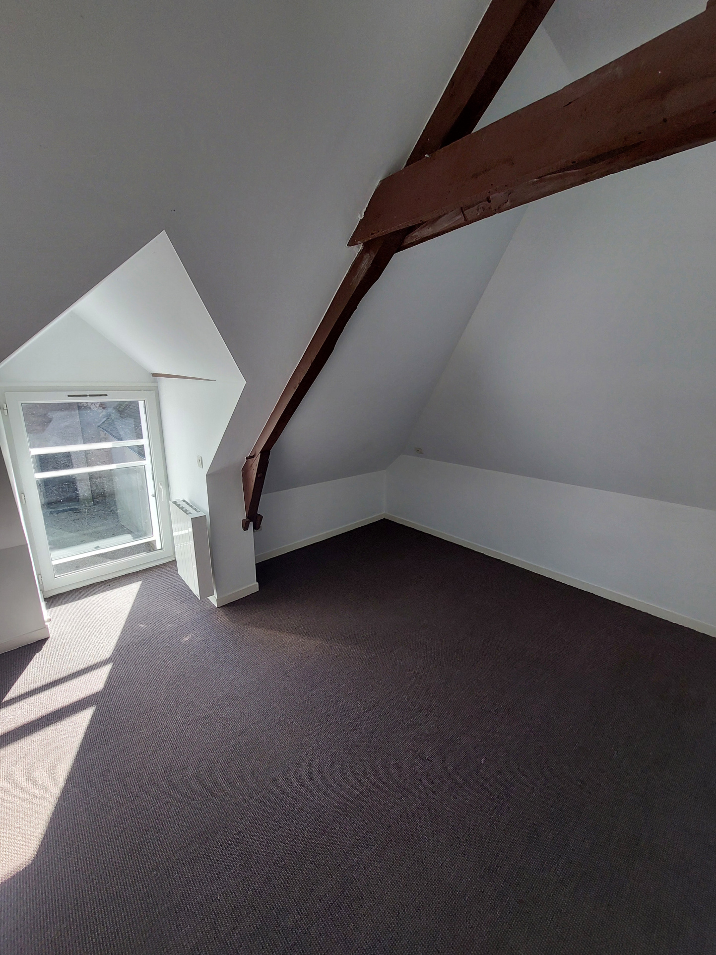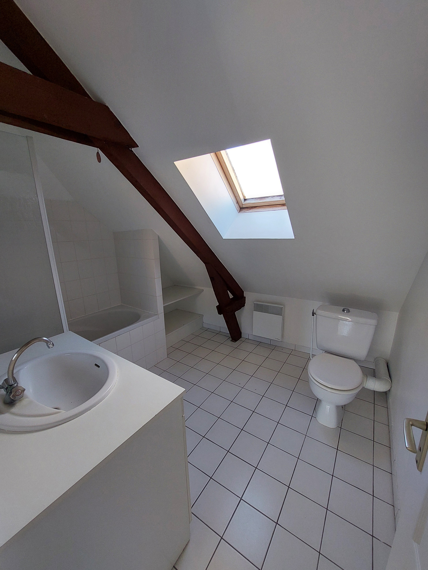 Maison de bourg comprenant : entrée sur pièce de vie avec cheminée insert, cuisine aménagée semi-équipée, WC avec lave-mains et cellier avec chauffe eau.