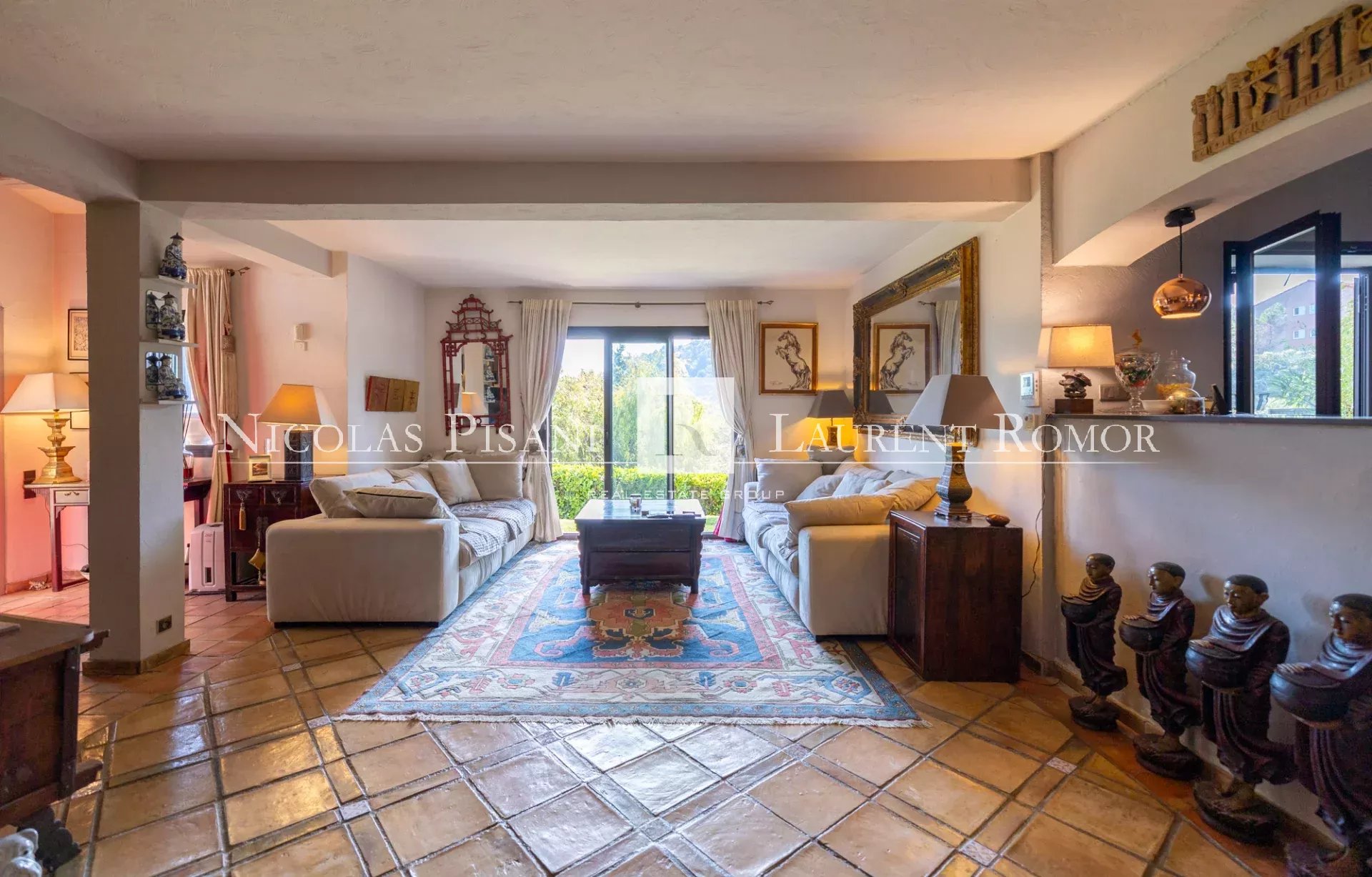 Au rez-de-jardin, une spacieuse pièce de vie avec cuisine ouverte jouissant d'un accès direct au jardin,  piscine et véranda.