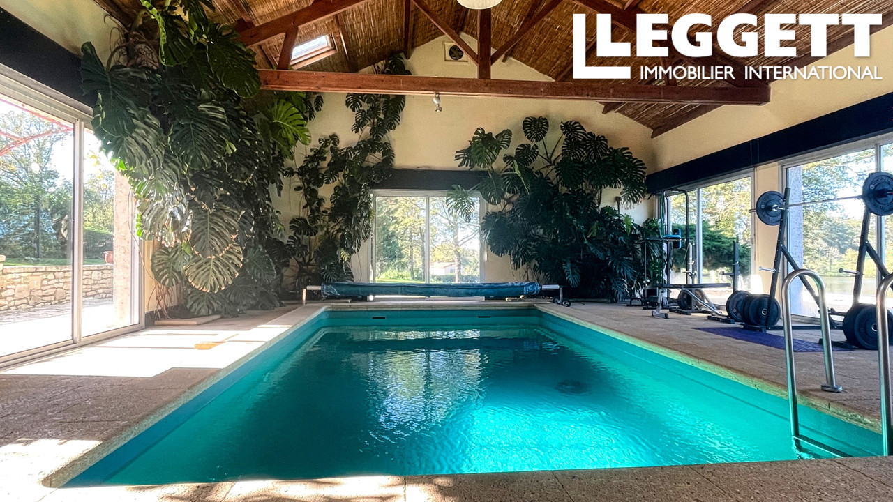 A32519JBR86 - Une occasion rare d'acheter ce magnifique ensemble qui comprend une spacieuse villa de 4 chambres et 4 salles de bains avec mezzanine, piscine intérieure, sauna et des vues sur l'étang à couper le souffle. Un ancien moulin à eau rénové, converti en deux gîtes de 2 chambres, un restaurant/bar avec licence, un garage/atelier, un hangar avec un champ attenant et l'étang.