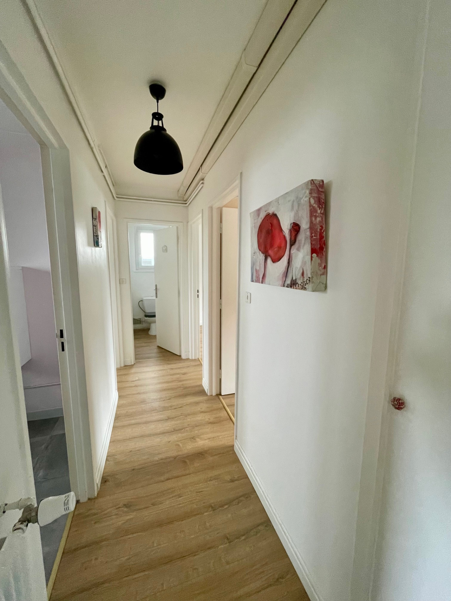 Appartement de type F4 situé au 2ème et dernier étage comprenant : entrée / dégagement, cuisine semi-équipée ouverte sur le salon / séjour, 3 chambres, salle de bains (baignoire), wc.