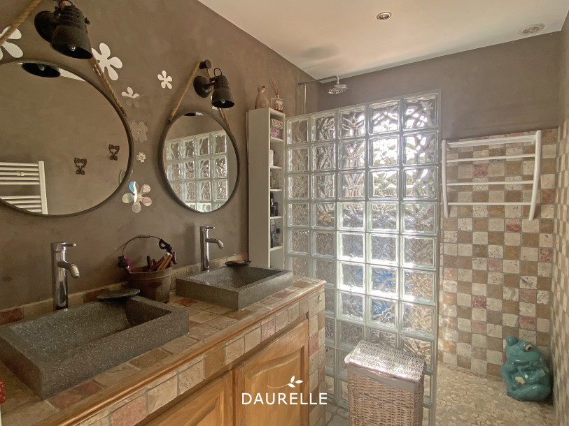 L'espace piscine exposé Sud est entouré d'une grande terrasse, un bel endroit pour partager d'agréables moments en famille ou entre amis