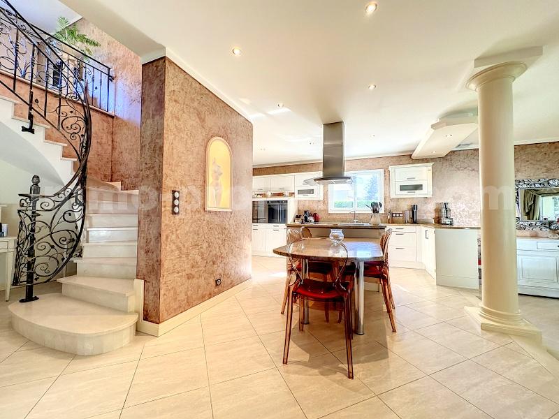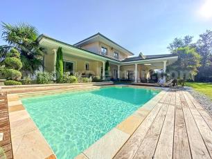 Découvrez cette somptueuse maison individuelle de prestige située dans la charmante commune de Cranves-Sales, à proximité des commodités locales, des écoles et des axes routiers permettant un accès facile à Genève en seulement 15 minutes en voiture, ainsi qu'aux stations de ski environnantes. Nichée au c½ur d'un écrin de verdure, cette villa exceptionnelle répond aux attentes des amateurs de luxe, de confort et d'authenticité.