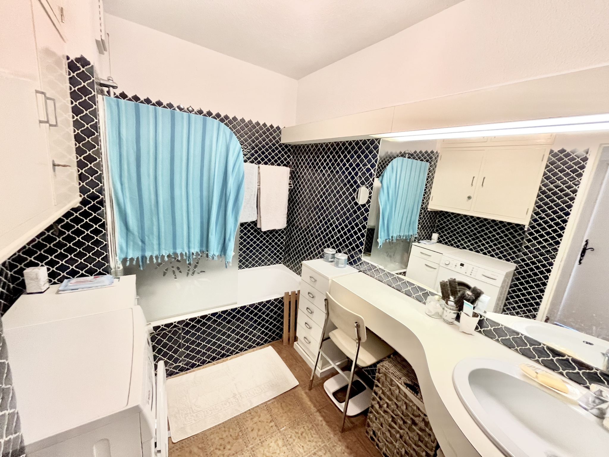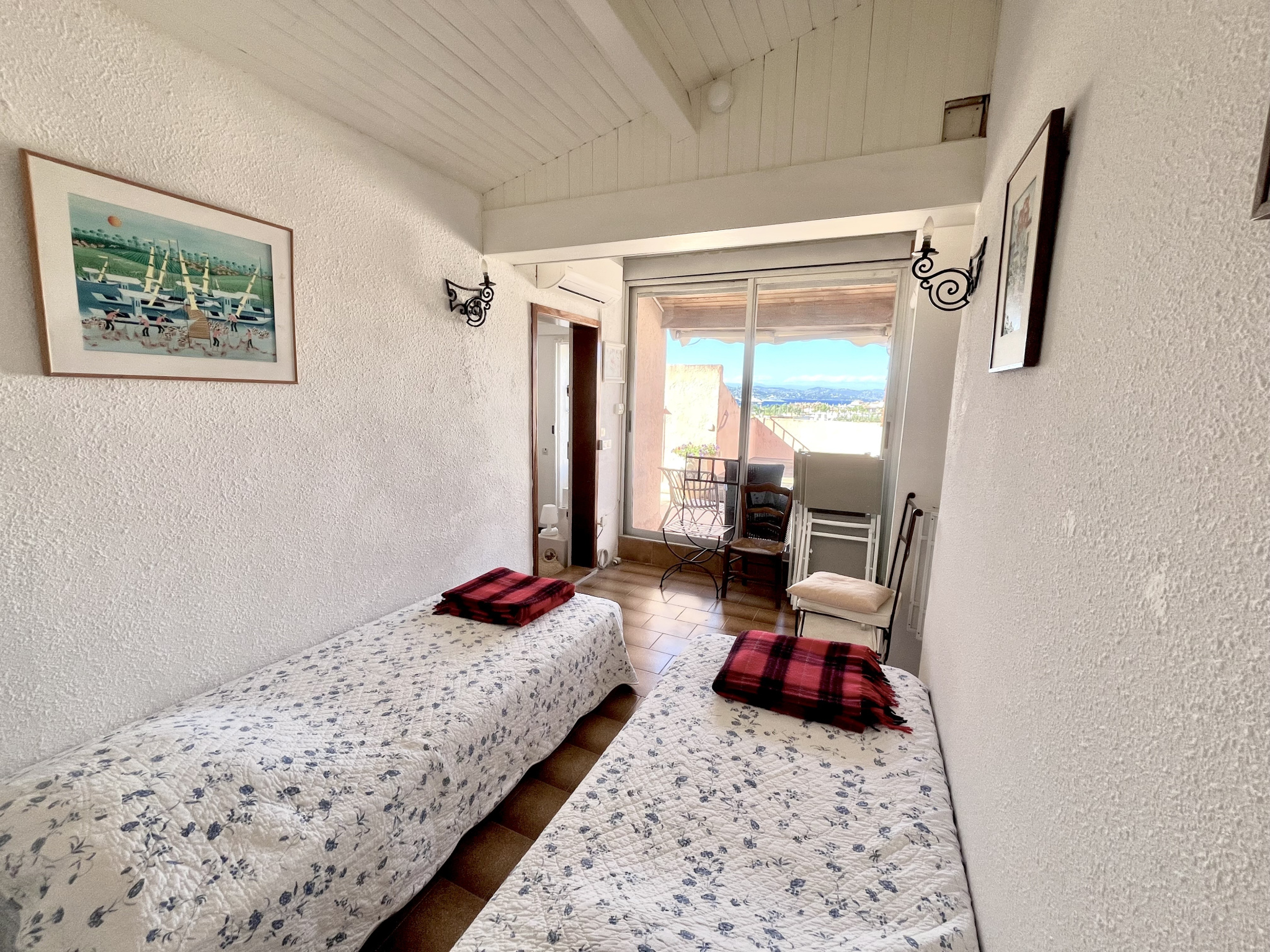 Au dernier étage d'une copropriété sécurisée avec gardien et piscine, un appartement unique de part sa vue féerique : au niveau principal : séjour/salle à manger/cuisine US donnant sur une terrasse de 7.10 m2, une chambre, une salle de bain, un wc. Au niveau R+1 : une petite chambre aménagée dans un solarium fermé, une douche et un wc, une terrasse sur le toit comprenant un appenti et totalisant 29.84 m2 Compris dans le prix, une place de parking en sous sol, et 2 caves. L'ensemble nécessite des travaux. Vue imprenable des 2 niveaux sur le village, la citadelle et les Alpes