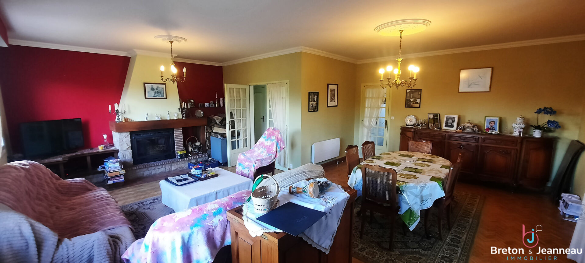 Sur une parcelle de 3500m² arboré et sans vis à vis, Breton et Jeanneau Immobilier vous propose une charmante maison sur sous-sol de 156m² avec de beaux volumes.