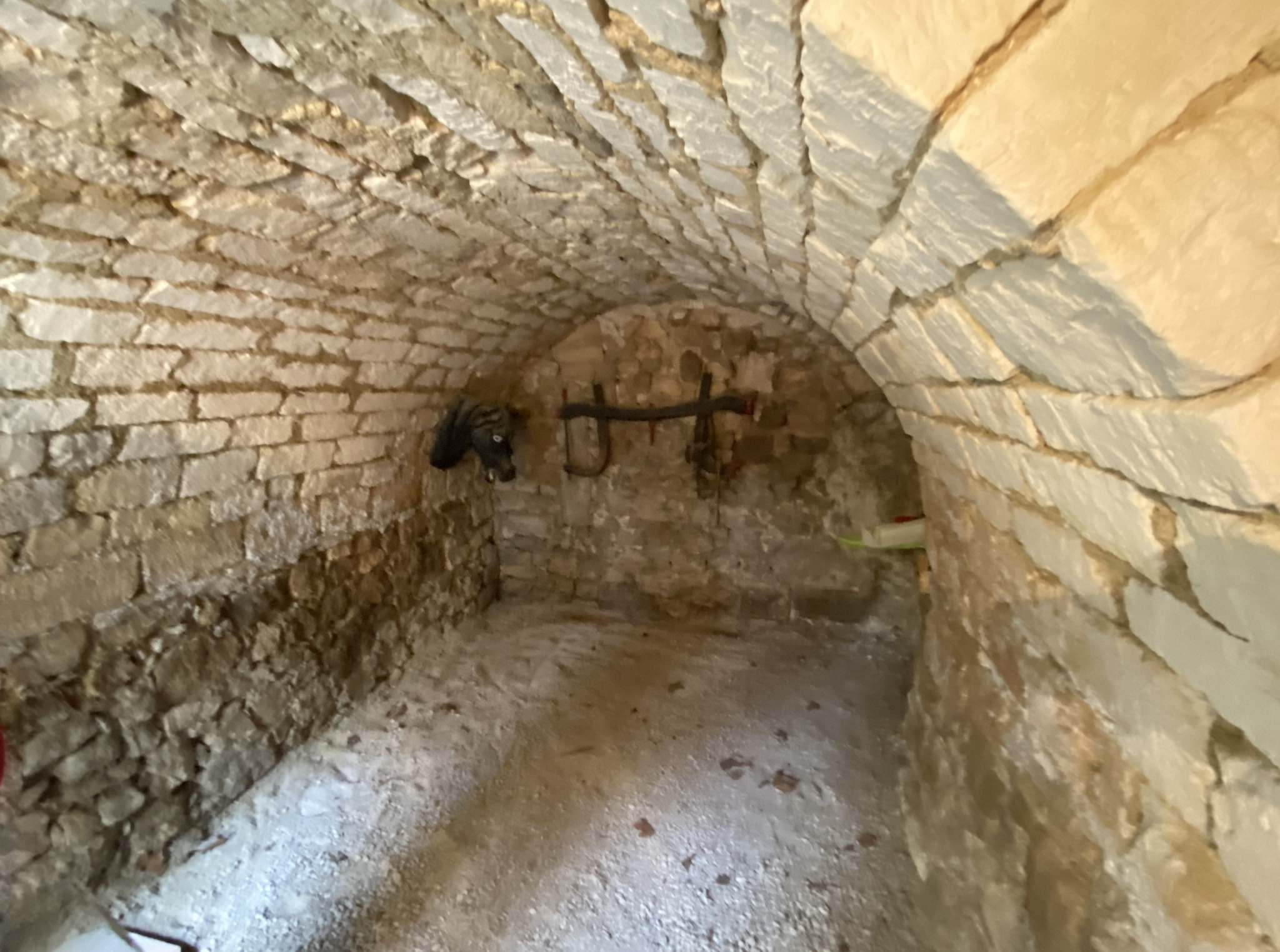 Les éléments architecturaux d'époque tel que l'emplacement du four à pain dans la partie salon ou les caves voutées ajoutent une touche de caractère unique à cette propriété.