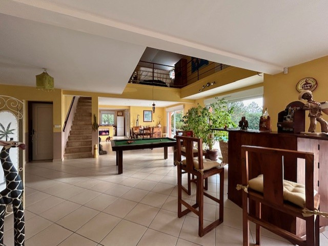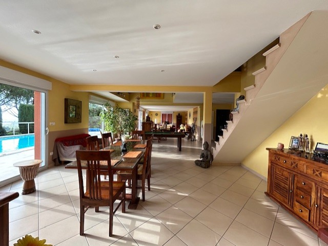 Espace convivial pour cette MAISON de STYLE PROVENCAL de 240 m2 dont une pièce principale de 72 m2 (cuisine équipée ouverte sur salon/séjour) est très lumineuse grâce à 5 grandes baies vitrées donnant sur belle terrasse avec piscine et sans oublier une vue exceptionnelle. Dressing, salle de bains, et deux chambres complètent le rez-de-chaussée. Belle mezzanine, deux chambres et une salle d'eau avec toilette constitue l'étage. Un double garage est accessible depuis un parking goudronné et également par le cellier communiquant directement avec la cuisine et l'entrée. Prestations de qualités, bonne isolation, orientation Sud, et son magnifique parc arboré et clos rendent cette maison agréable au quotidien sans vis à vis. EXCLUSIVITE ! MAISON Réf 4350. Agence DUCOS IMMOBILIER.