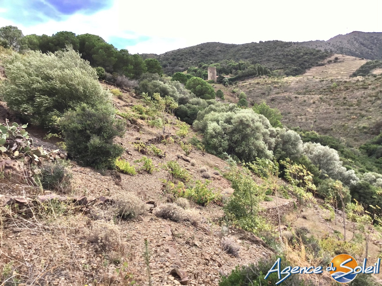 Situé au Sud de Banyuls Sur Mer , Une parcelle de terre comprenant des vignes de 15 ans d'âge , un cassot ,et réservoir d'eau. Pour une production de mélange de Collioure rouge et Banyuls sur 32 ares 50 .