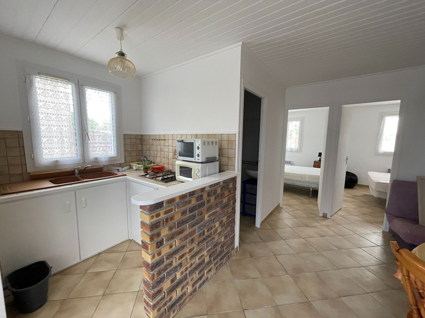 Dans un petit village typique de bord de mer, à 800 m de la plage, dans une petite résidence de cinq lots, LOGEMENT d'une surface de 42,66 m² (loi Carrez) comprenant une pièce de vie avec cuisine, deux chambres, une salle d'eau avec wc, un débarras - Un jardin à l'arrière - Une terrasse à l'avant - Une place de parking.