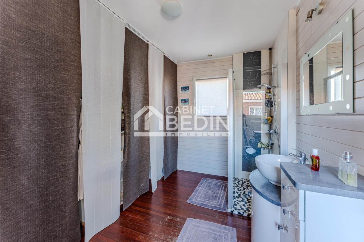 Très bien implantée sur son terrain de près de 900m², où tout a été fait pour en limiter l'entretien, de plain pied, vous apprécierez sa typologie de 5 chambres, 2 salles d'eau, 2 wc permettant d'accueillir famille et amis.