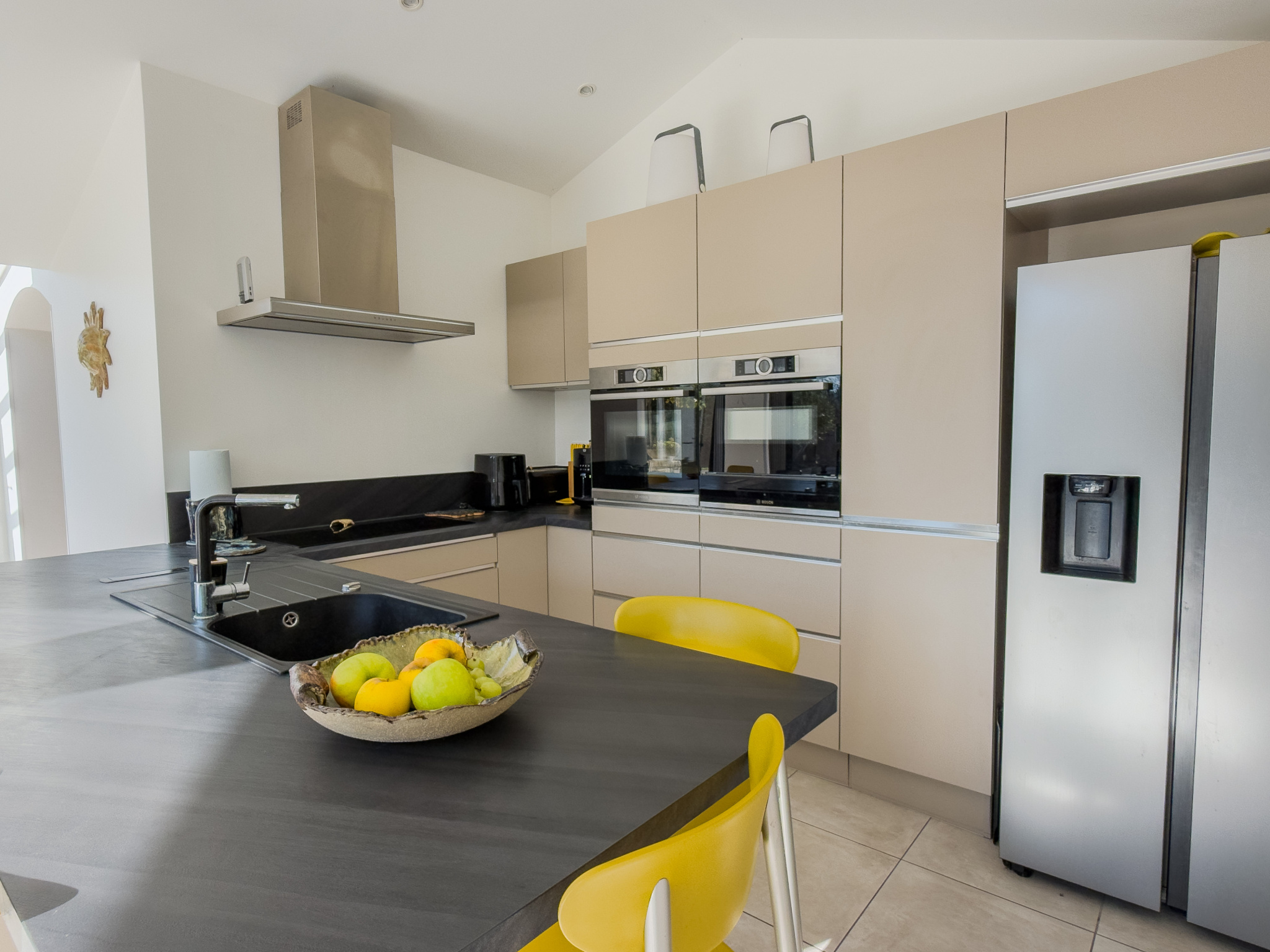 Elle dispose d'un salon-séjour de 36m2 environ avec cheminée et mezzanine de 24m2 environ et d'une cuisine équipée lumineuse de 32m2 environ. Vous profiterez également d'un bureau de 9m2 environ et d'un cellier/buanderie 6m2 environ.